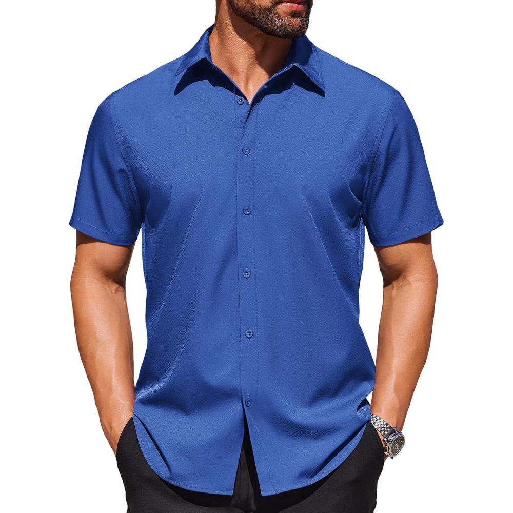 Be the first to review “COOFANDY Mens Wrinkle Free Dress Shirt Polka Dot Short Sleeve Button Down Business Casual Shirts(Dark Blue)” Cancel reply