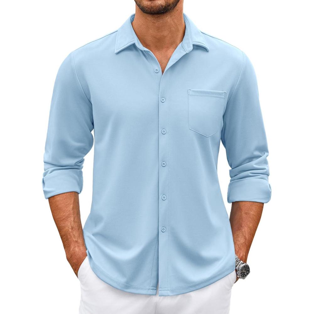 COOFANDY Mens Wrinkle Free Dress Shirts Long Sleeve Untucked Shirts Casual Button Down Shirts(Blue)
