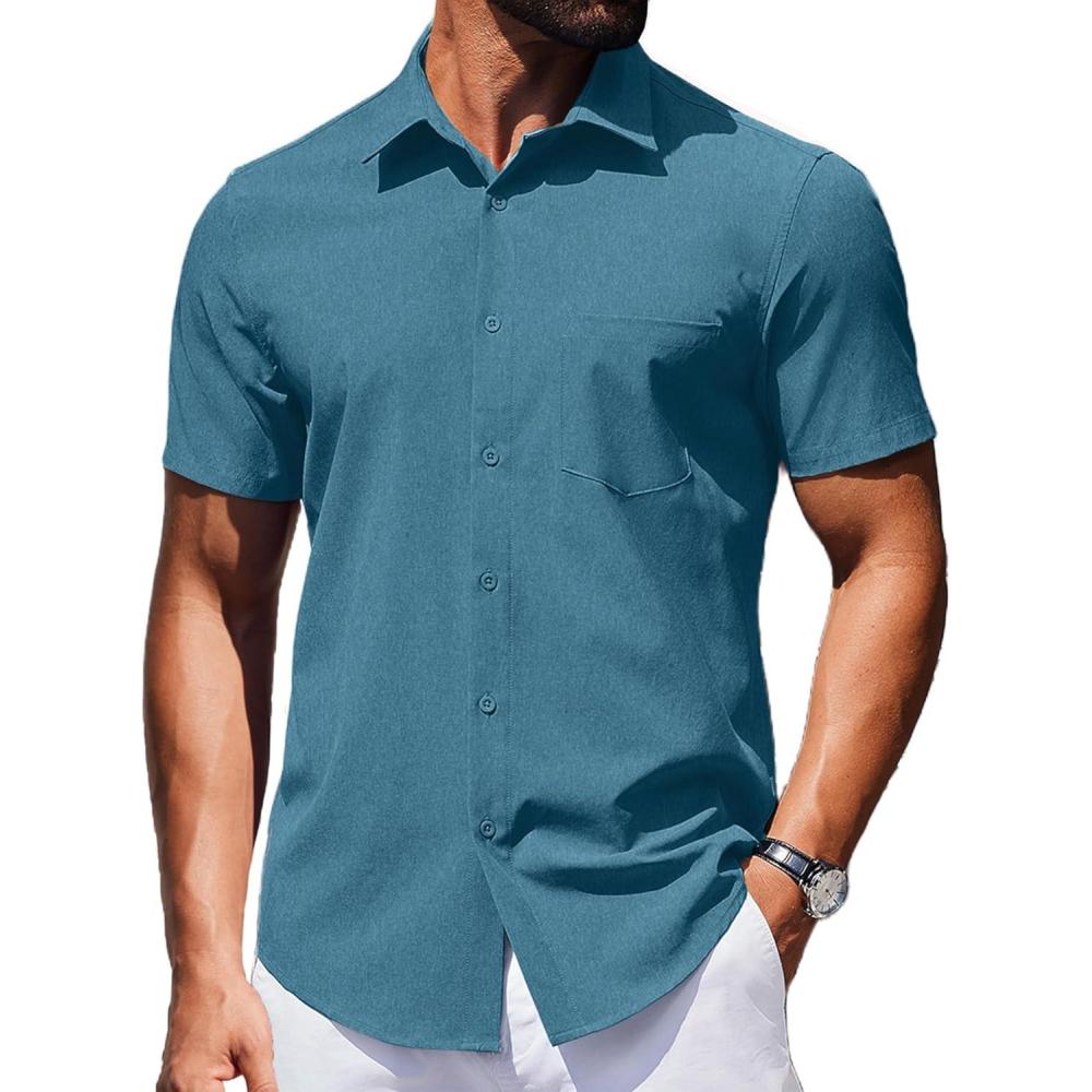 COOFANDY Mens Wrinkle Free Shirts 2025 Short Sleeve Casual Button Down Summer Dress Shirts(Deep Blue)