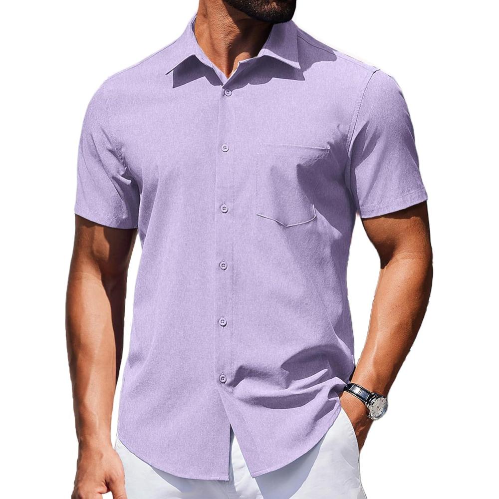 COOFANDY Mens Wrinkle Free Shirts 2025 Short Sleeve Casual Button Down Summer Dress Shirts(Lilac)