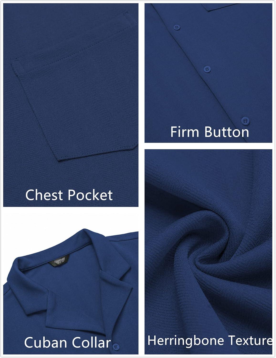 COOFANDY Men’s Wrinkle Free Untucked Cuban Shirt Business Casual Button Down Shirts Short Sleeve Shirt(Navy Blue)