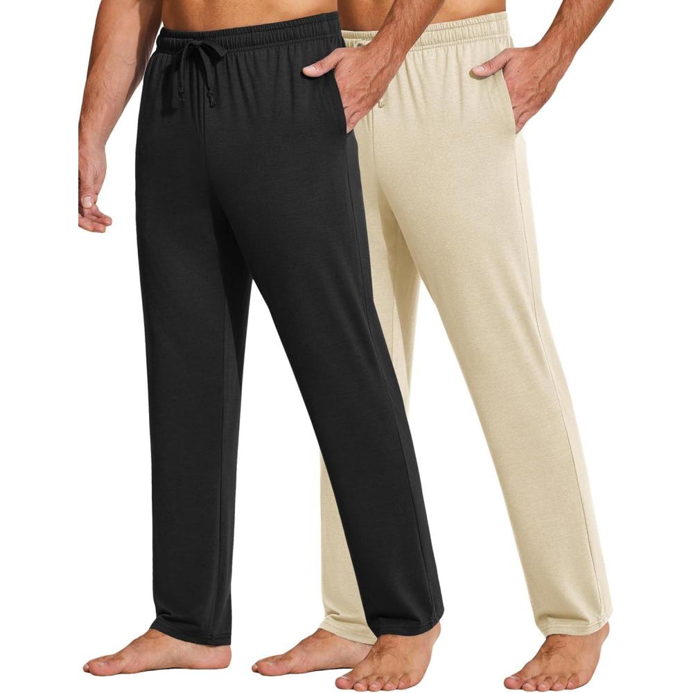 COOFANDY Men’s Yoga Sweatpants Lightweight Open Bottom Lounge Pants Casual Drawstring Sweat Pants with Pockets(2 Pack: Black/Khaki)