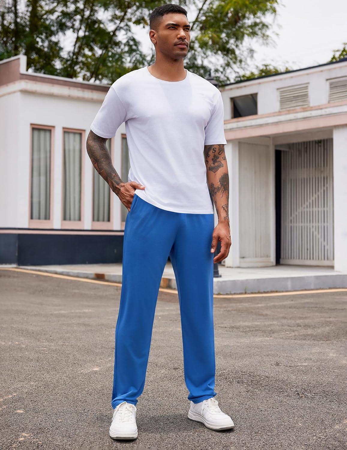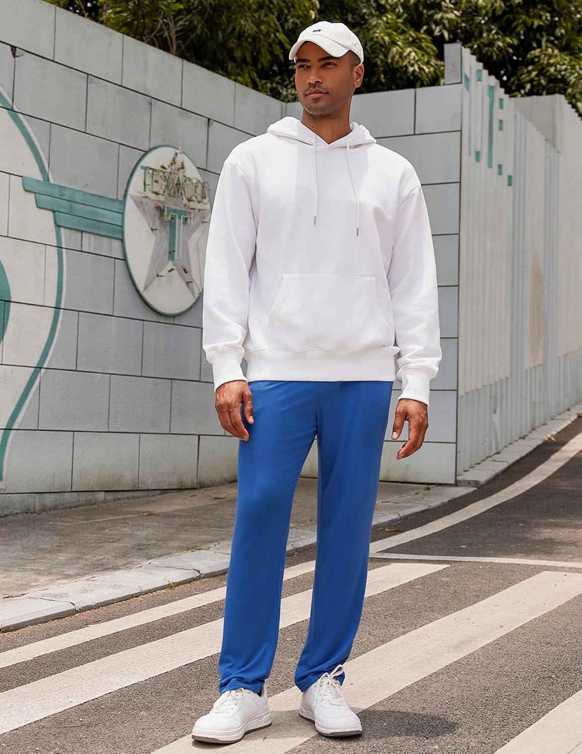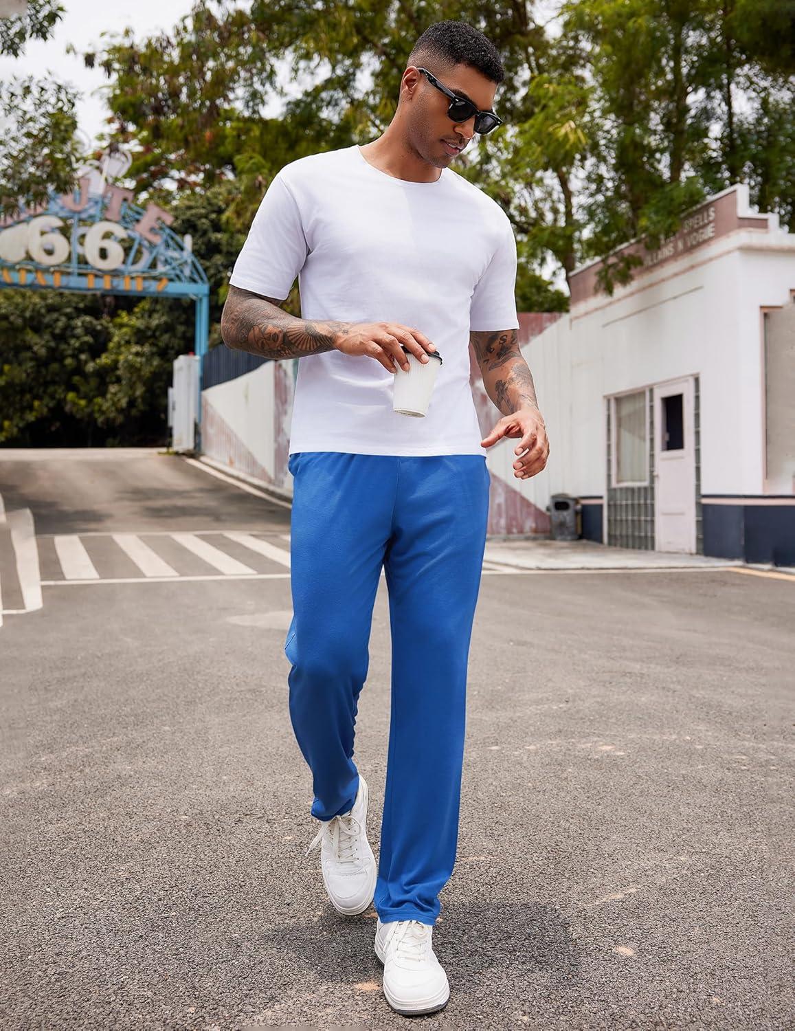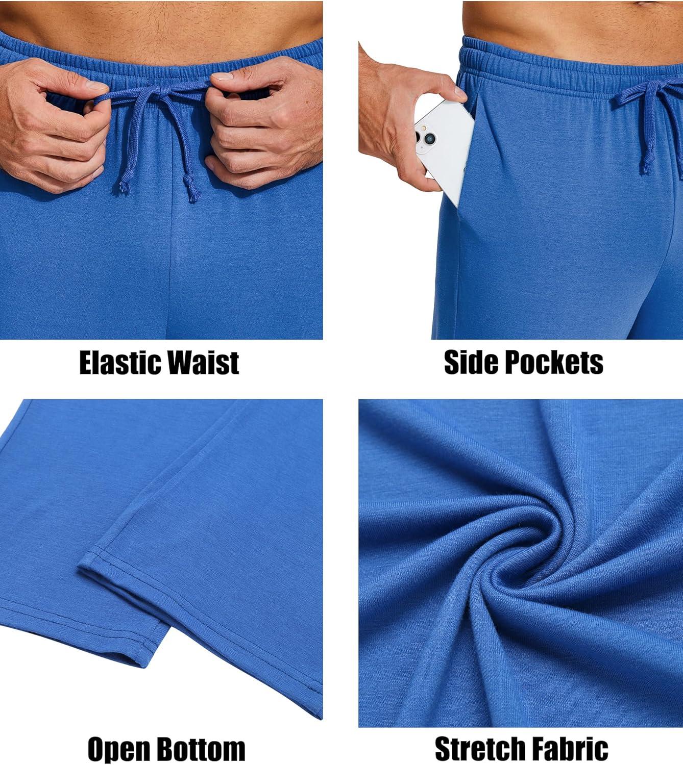 COOFANDY Men’s Yoga Sweatpants Lightweight Open Bottom Lounge Pants Casual Drawstring Sweat Pants with Pockets(Blue)