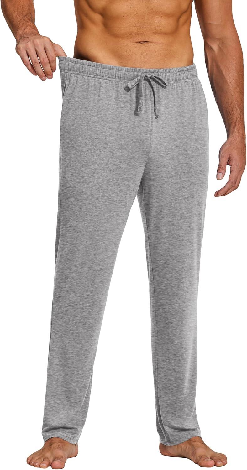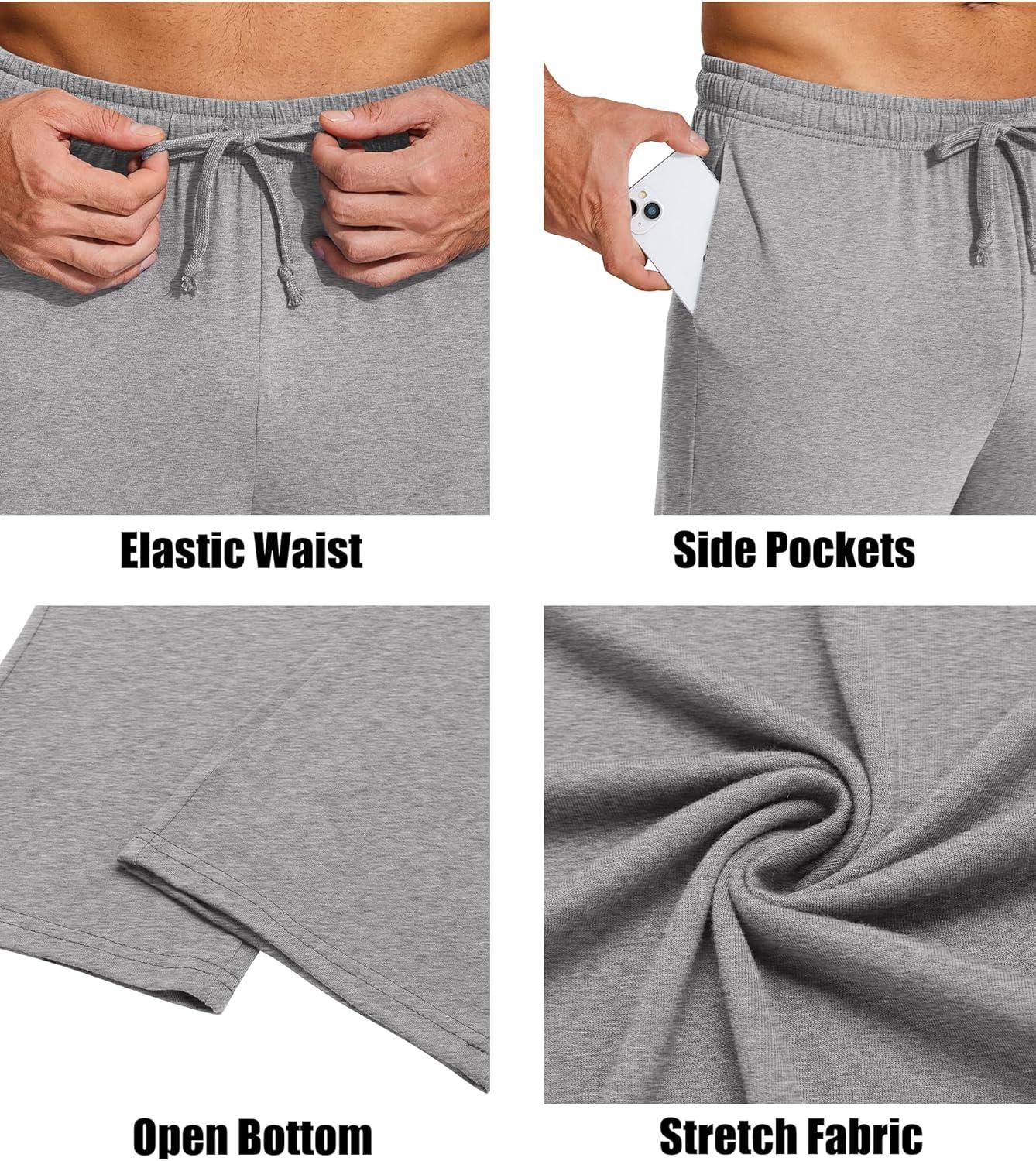 COOFANDY Men’s Yoga Sweatpants Lightweight Open Bottom Lounge Pants Casual Drawstring Sweat Pants with Pockets(Light Grey)