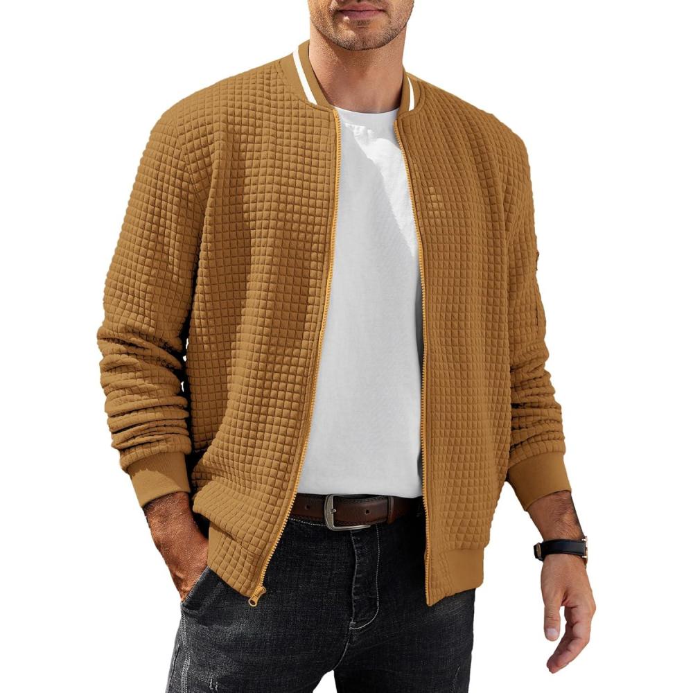 COOFANDY Mens Zip Up Sweater Jacket Waffle Sweatshirt Knit Bomber Lightweight Casual Jackets(Light Brown)