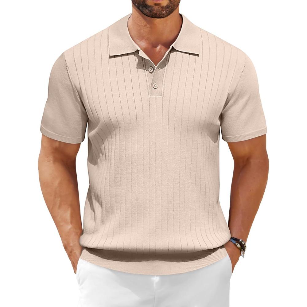 COOFANDY Men’s Zipper Polo Shirt Casual Knit Short Sleeve Polo T Shirt Classic Fit Shirts(Beige)