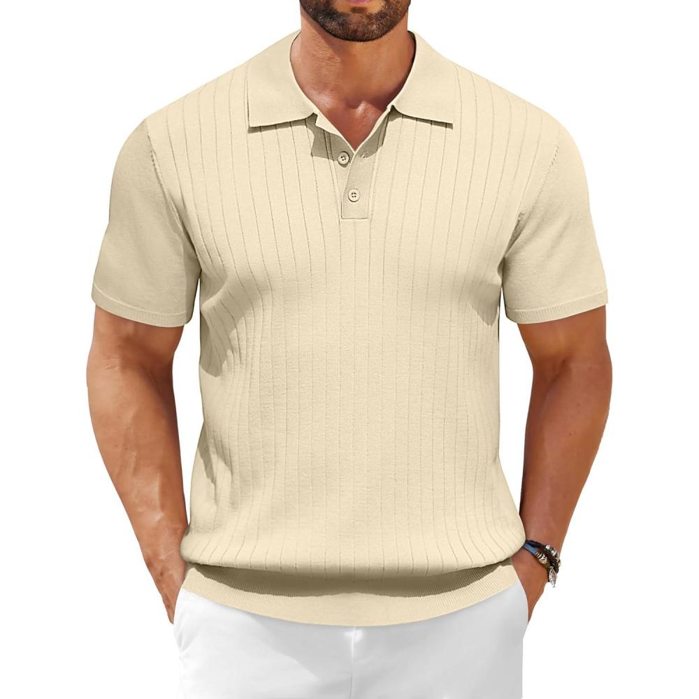 COOFANDY Men’s Zipper Polo Shirt Casual Knit Short Sleeve Polo T Shirt Classic Fit Shirts(Cream)