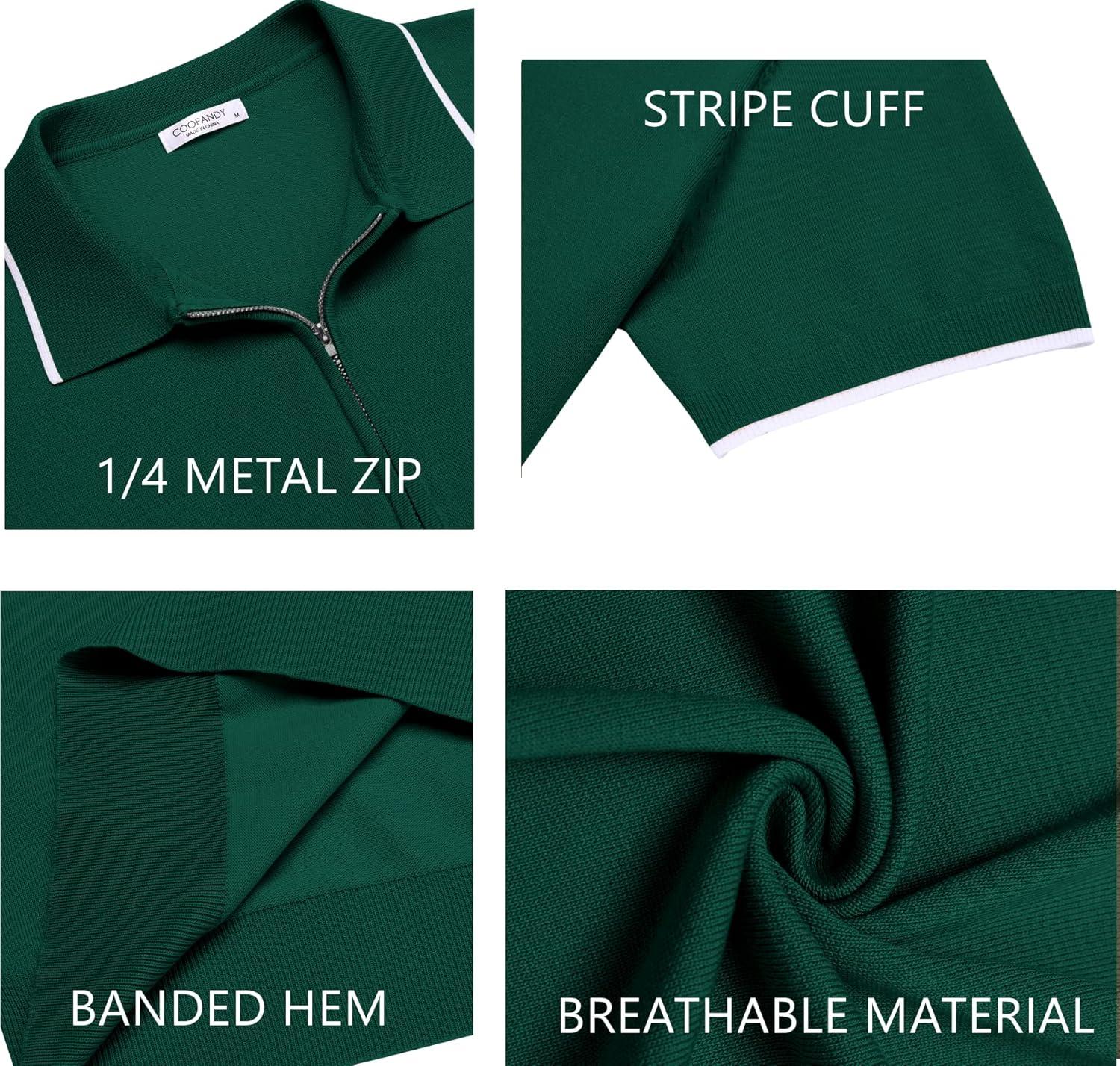 COOFANDY Men’s Zipper Polo Shirt Casual Knit Short Sleeve Polo T Shirt Classic Fit Shirts(Green)