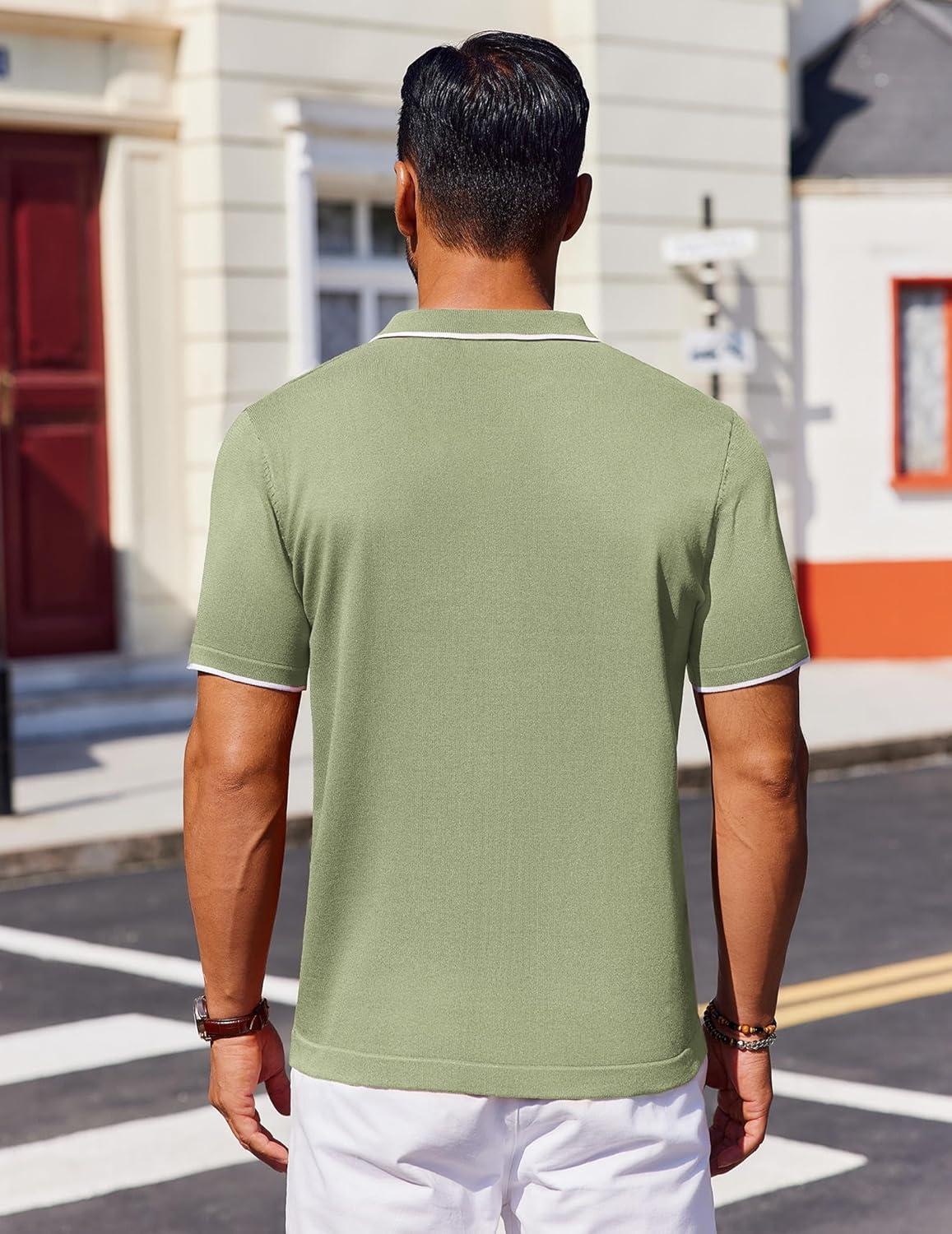 COOFANDY Men’s Zipper Polo Shirt Casual Knit Short Sleeve Polo T Shirt Classic Fit Shirts(Light Green)