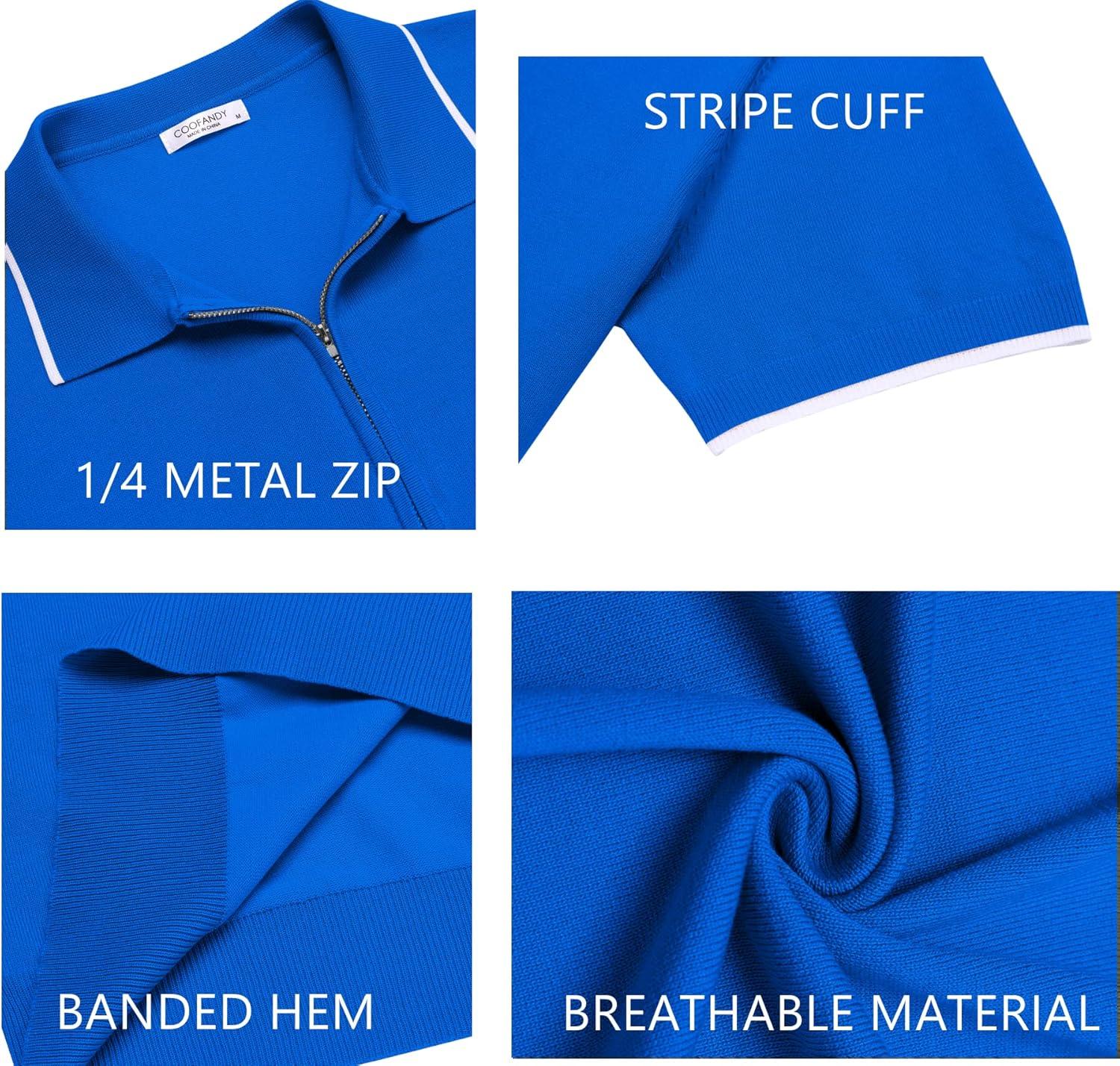 COOFANDY Men’s Zipper Polo Shirt Casual Knit Short Sleeve Polo T Shirt Classic Fit Shirts(Royal Blue)