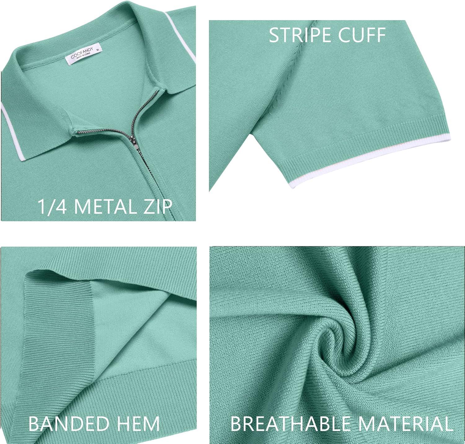 COOFANDY Men’s Zipper Polo Shirt Casual Knit Short Sleeve Polo T Shirt Classic Fit Shirts(Turquoise)