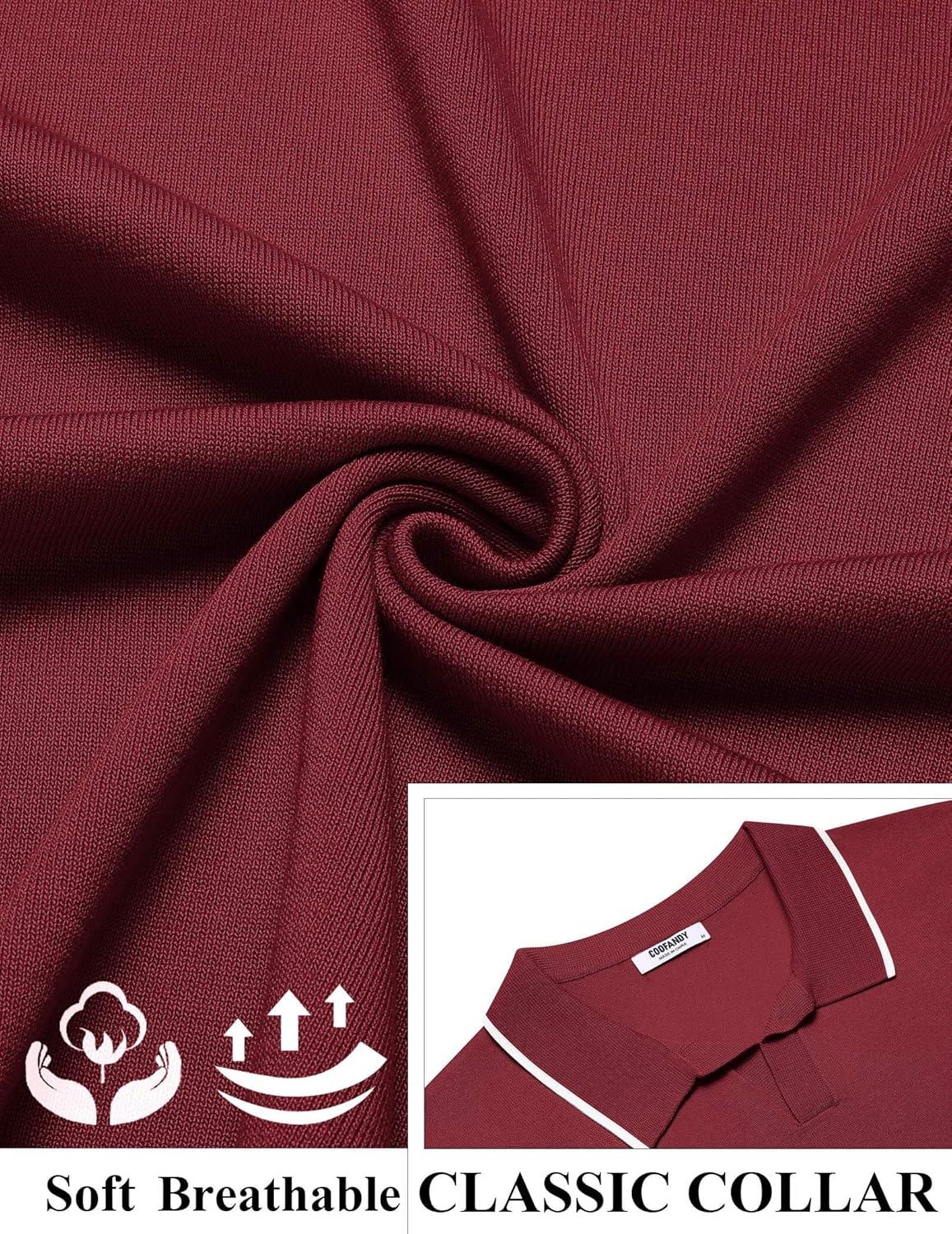 COOFANDY Men’s Zipper Polo Shirt Casual Knit Short Sleeve Polo T Shirt Classic Fit Shirts(Wine Red)