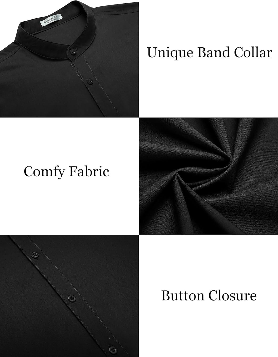 COOFANDY Muscle Fit Dress Shirts for Men Banded Collar Casual Button Down Shirts(Black)