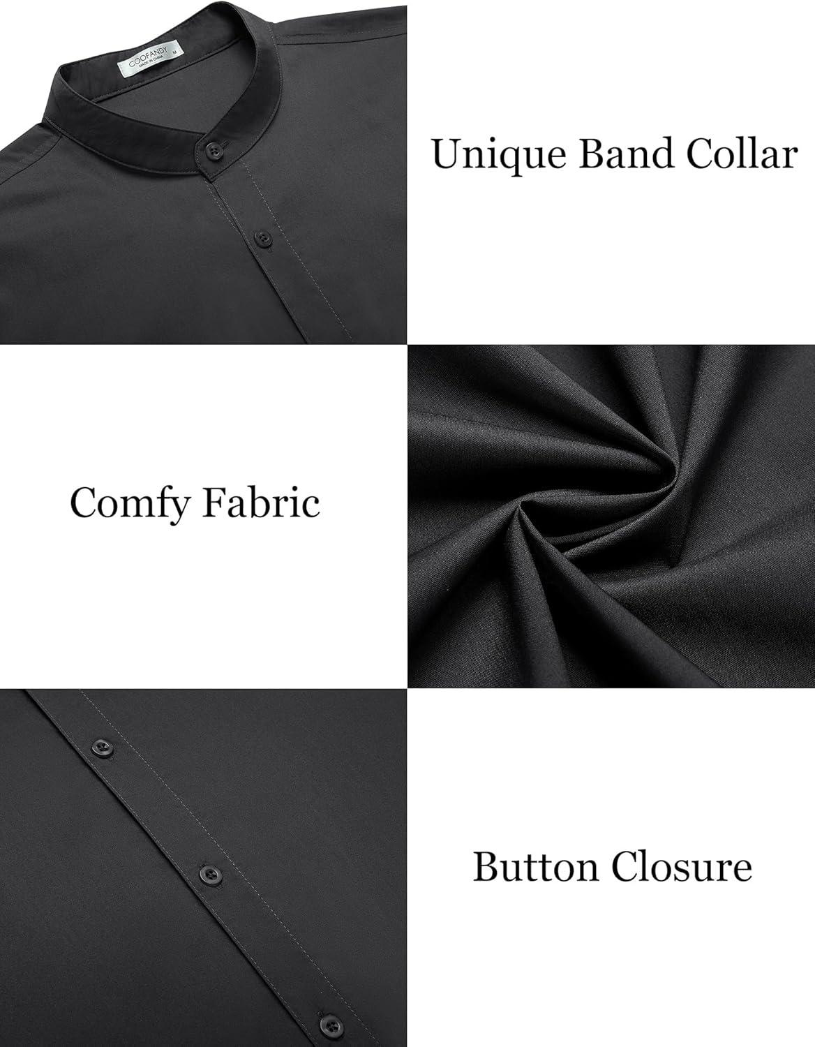 COOFANDY Muscle Fit Dress Shirts for Men Banded Collar Casual Button Down Shirts(Dark Grey)