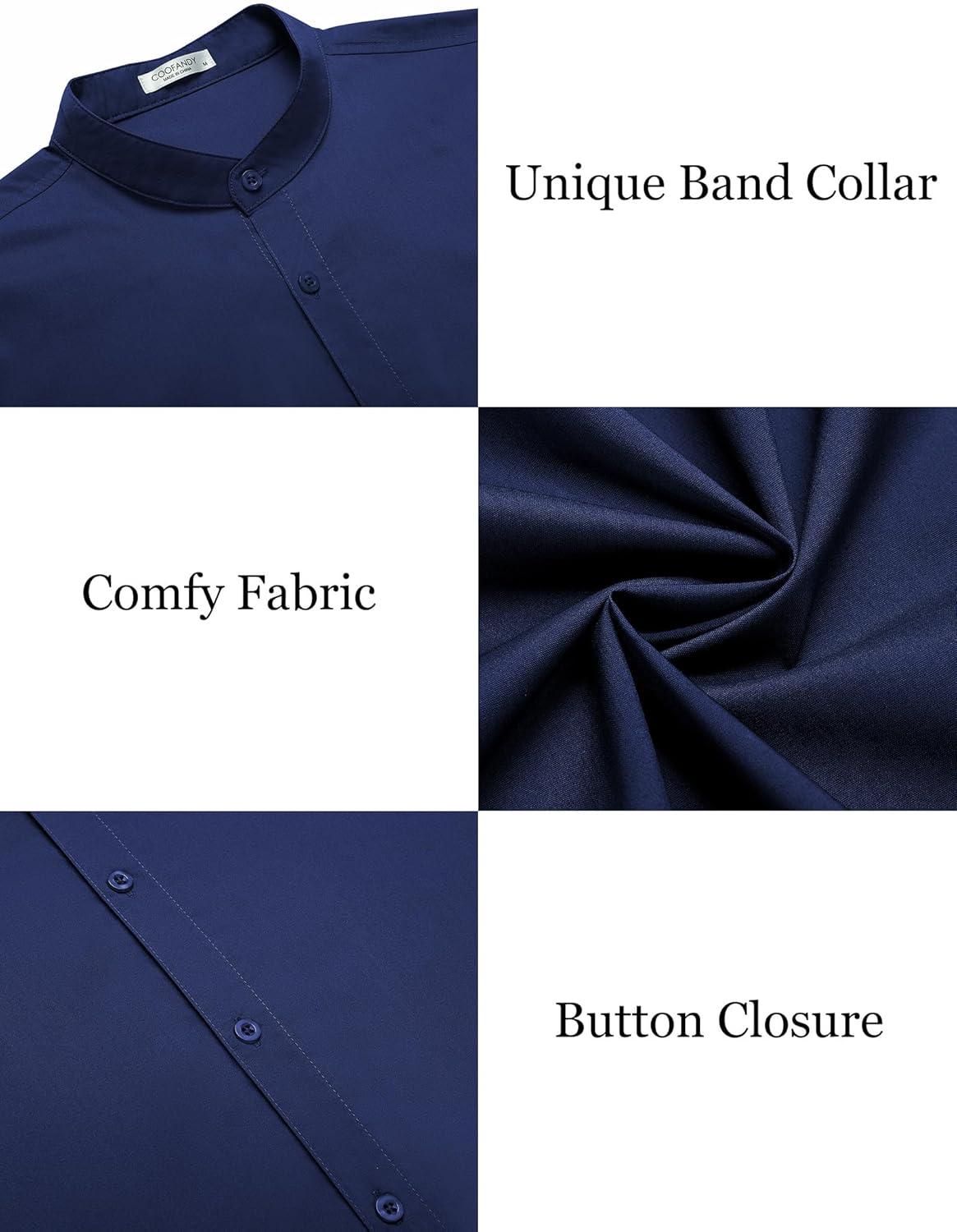 COOFANDY Muscle Fit Dress Shirts for Men Banded Collar Casual Button Down Shirts(Navy)