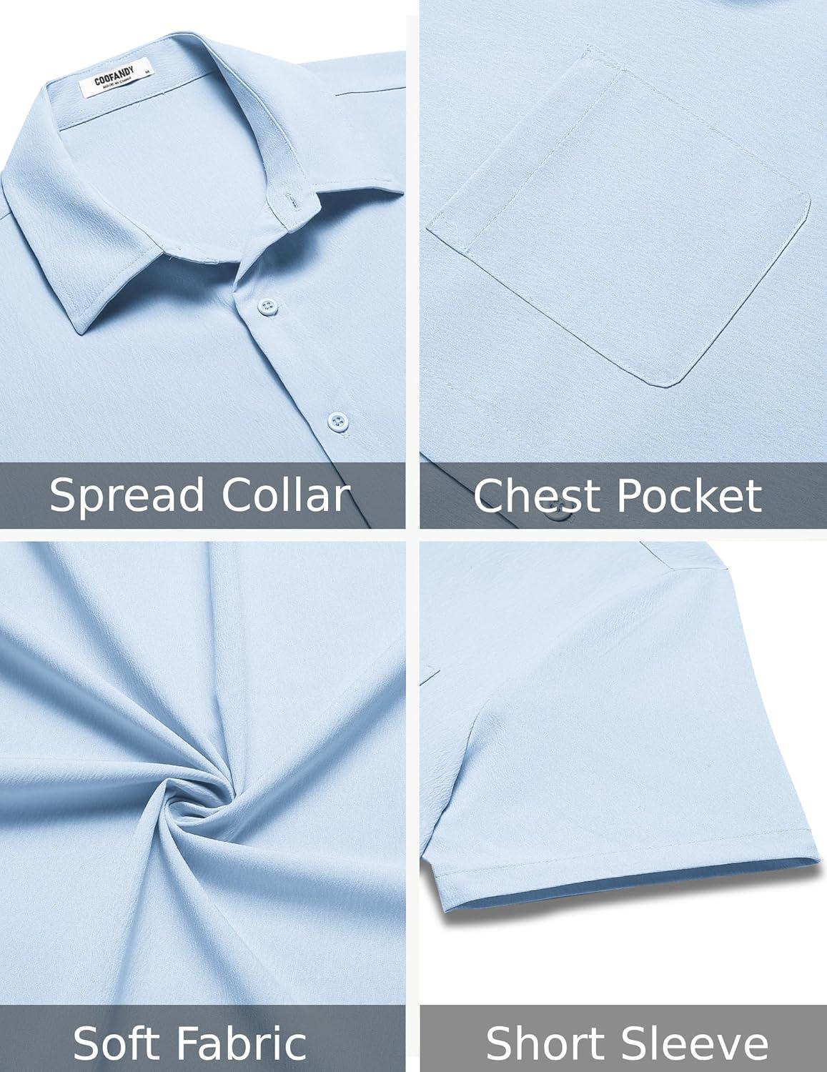 COOFANDY Shirts for Men Short Sleeve Button Down Shirt Casual Summer Beach Shirts(Angel Falls)