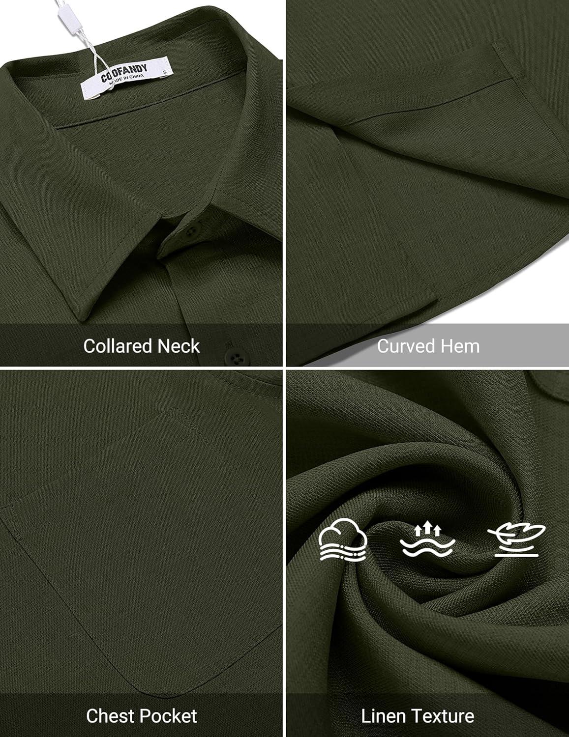 COOFANDY Shirts for Men Short Sleeve Button Down Shirt Casual Summer Beach Shirts(Army Green)