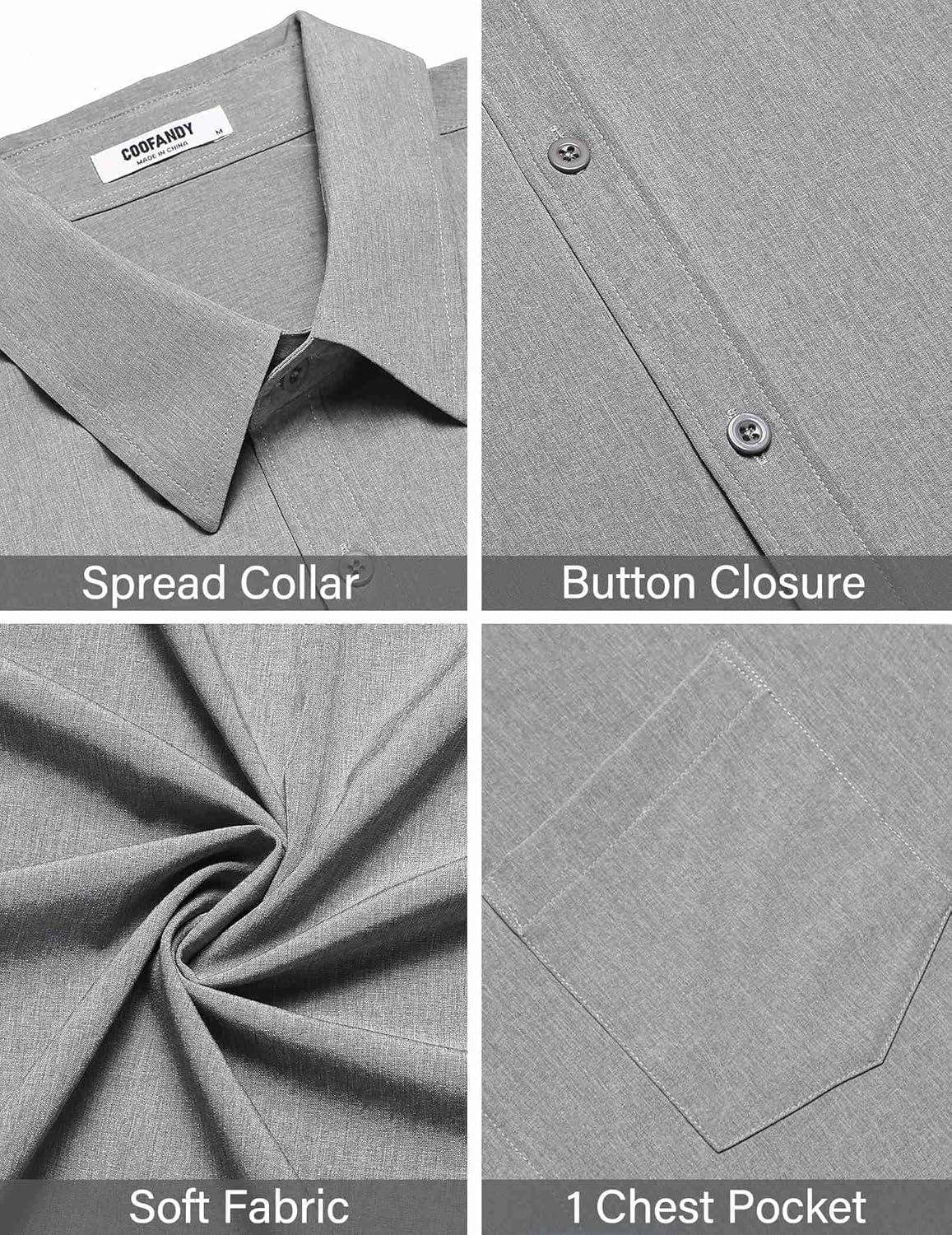 COOFANDY Shirts for Men Short Sleeve Button Down Shirt Casual Summer Beach Shirts(Ashen Gray)
