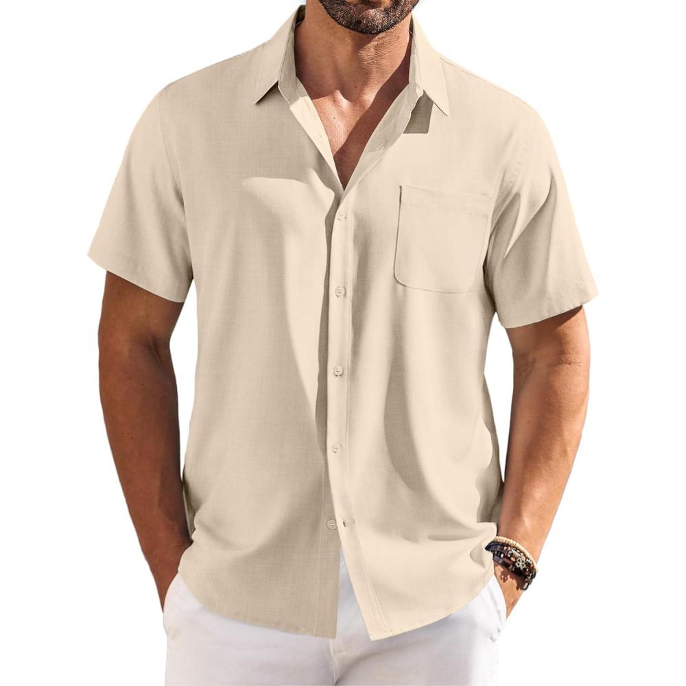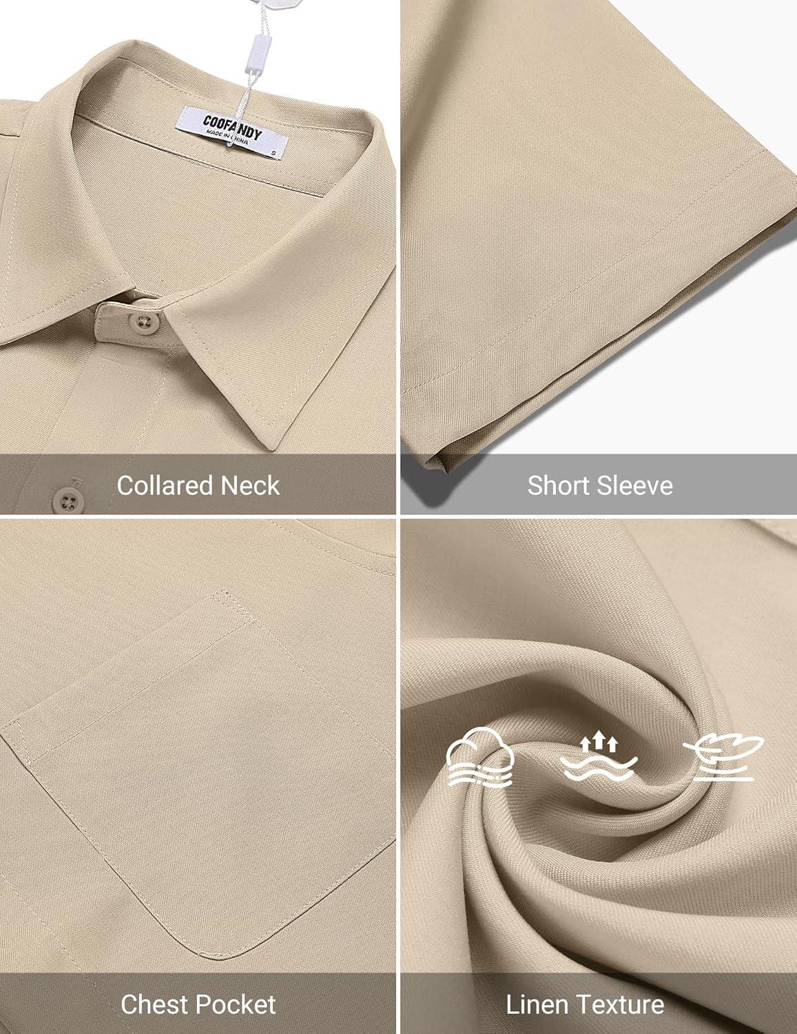 COOFANDY Shirts for Men Short Sleeve Button Down Shirt Casual Summer Beach Shirts(Champagne)