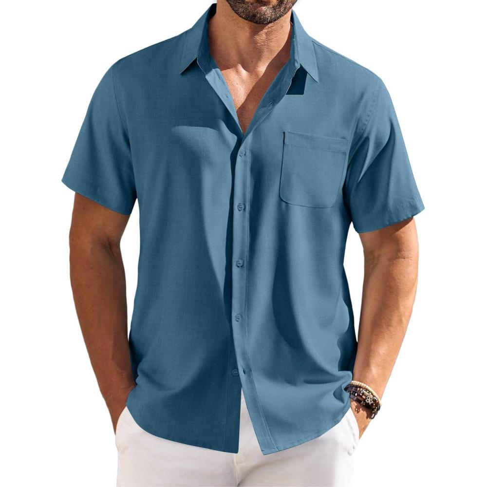 COOFANDY Shirts for Men Short Sleeve Button Down Shirt Casual Summer Beach Shirts(Deep Blue)