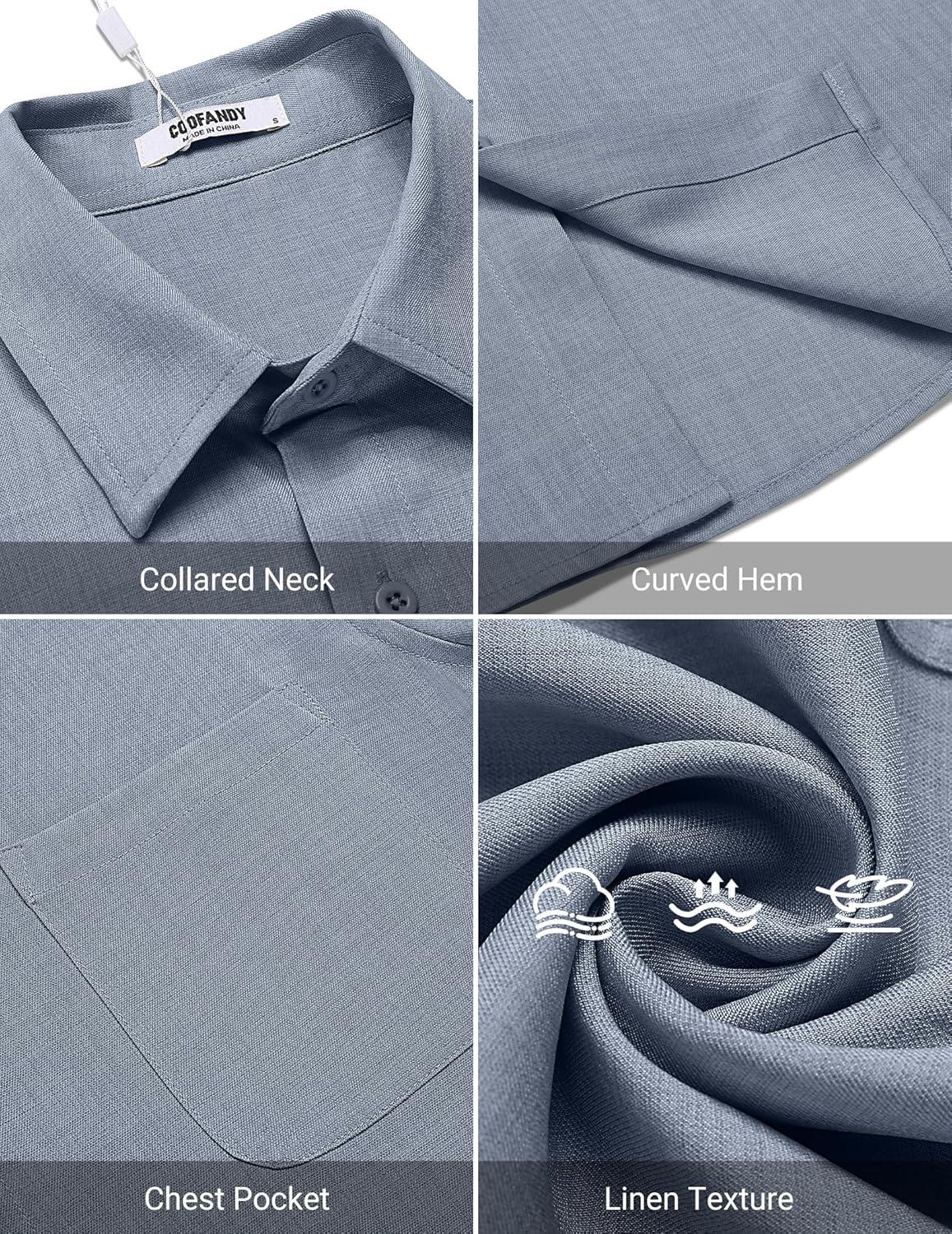 COOFANDY Shirts for Men Short Sleeve Button Down Shirt Casual Summer Beach Shirts(Grayish Blue)
