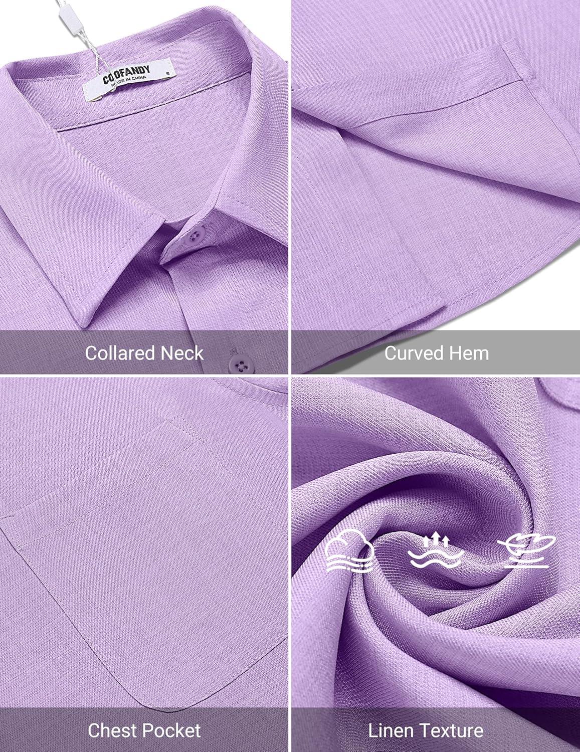 COOFANDY Shirts for Men Short Sleeve Button Down Shirt Casual Summer Beach Shirts(Lavender)