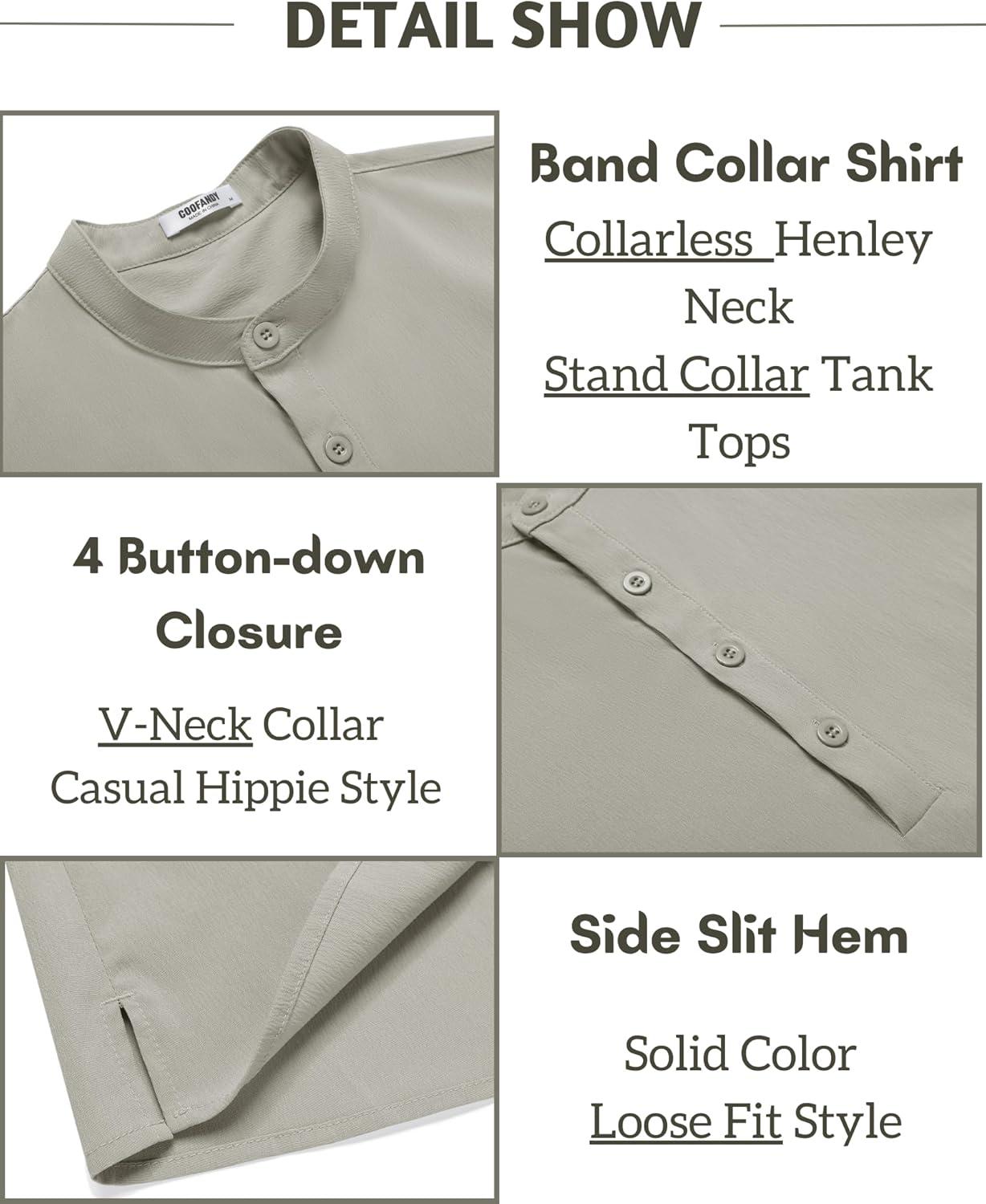 COOFANDY Mens Sleeveless Beach Shirts Casual Tank Tops Summer Button up Henley ShirtsProduct Feature: Sleeveless henley shirts for men, made of soft and comfortable fabric, feature with skin friendly, lightweight, breathable, wrinkle free and no need to iron, which can provide you comfort all the time. Brand: COOFANDY provide casual menswear and best customer experience. Providing Premium Quality, Great fabric for everyday outlook, Stylish design. Main Features:Color:Black, White, Navy Blue, Light Blue, Light Brown, Light GreySeason: Spring,Summer,FallDesign: Men tank top, band collar, solid color, button-down closure, Sleeveless. The sleeveless design allows air to circulate, preventing overheating and ensuring maximum comfort.Fit Style:RegularOccasions:This beach tank top is perfectly suitable for various occasions like beach, wedding, party, vacation, travel, cruises, camping, birthday, festival, lounging, yoga, meditation or daily casual wear. Also, it will be a good gift for your father, brother, boyfriend, husband, son or other male friends.Garment Care: Machine and hand wash are both available for the sleeveless hippie shirts. We recommend to buy one size bigger for loose, comfortable fit.