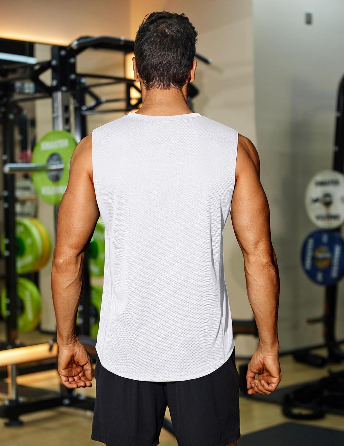 COOFANDY Sleeveless Muscle Shirts for Men Dry Fit Workout Gym Tank Tops Summer Swim Beach Shirt(Black/White)