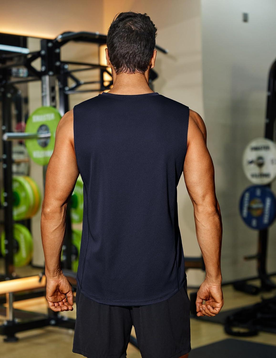 COOFANDY Sleeveless Muscle Shirts for Men Dry Fit Workout Gym Tank Tops Summer Swim Beach Shirt(Navy Blue/Blue)