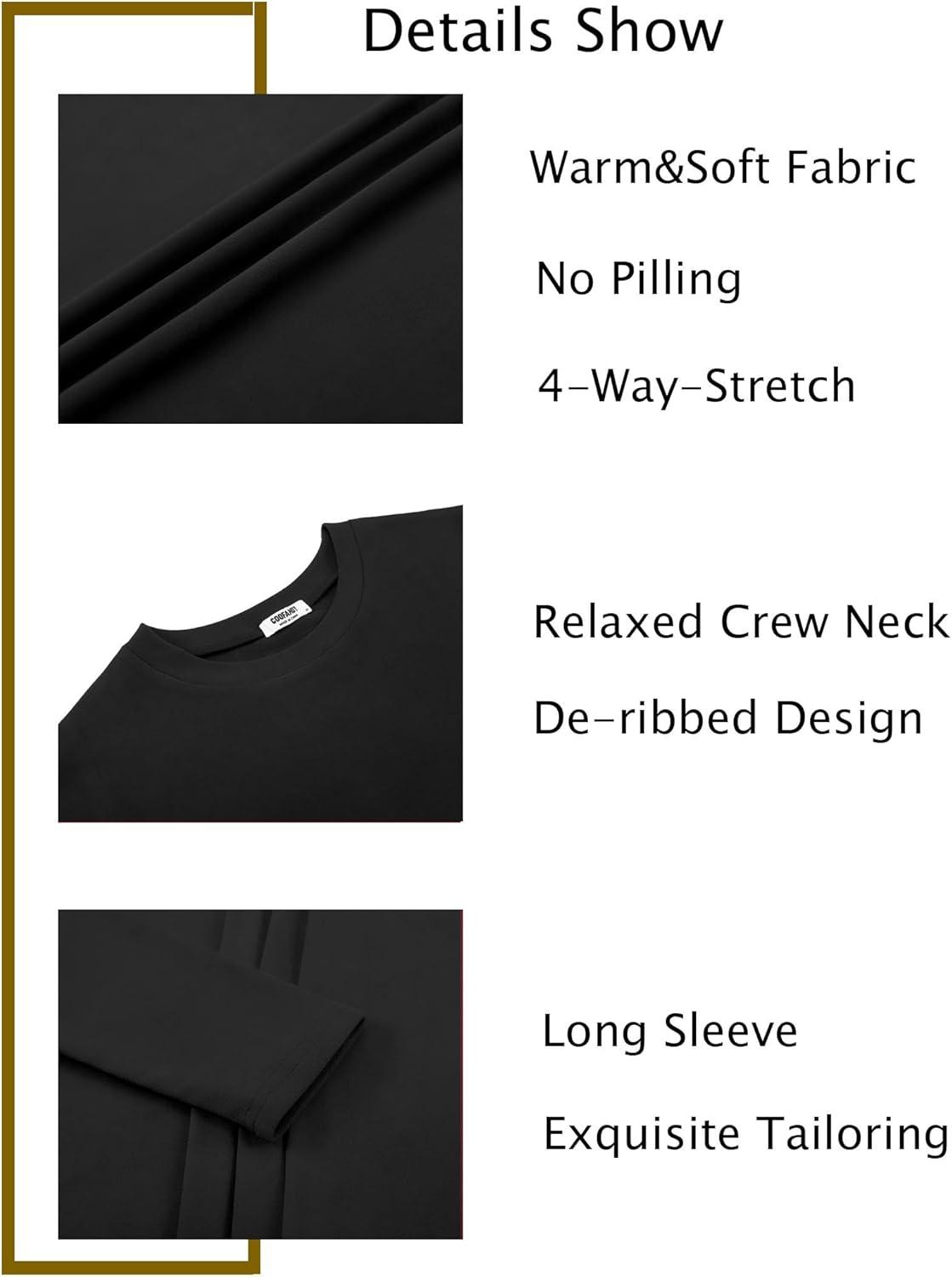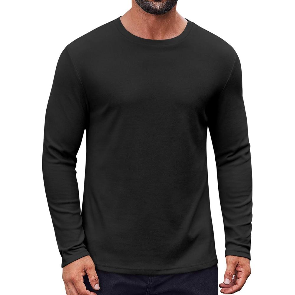 COOFANDY Thermal Shirts for Men Heavyweight Long Sleeve T Shirt Casual Basic Shirts Stretch Crew Neck Undershirts(Black)
