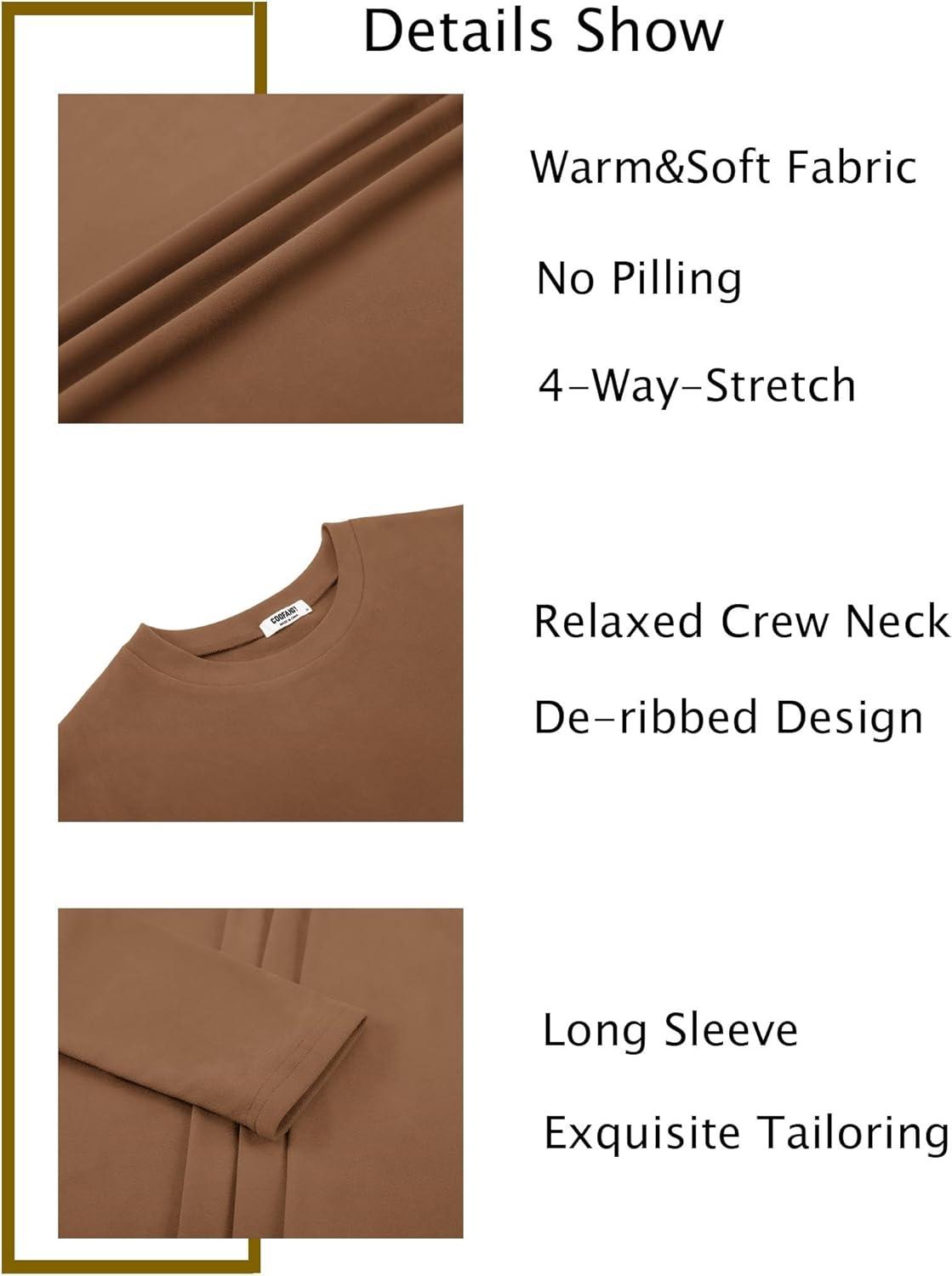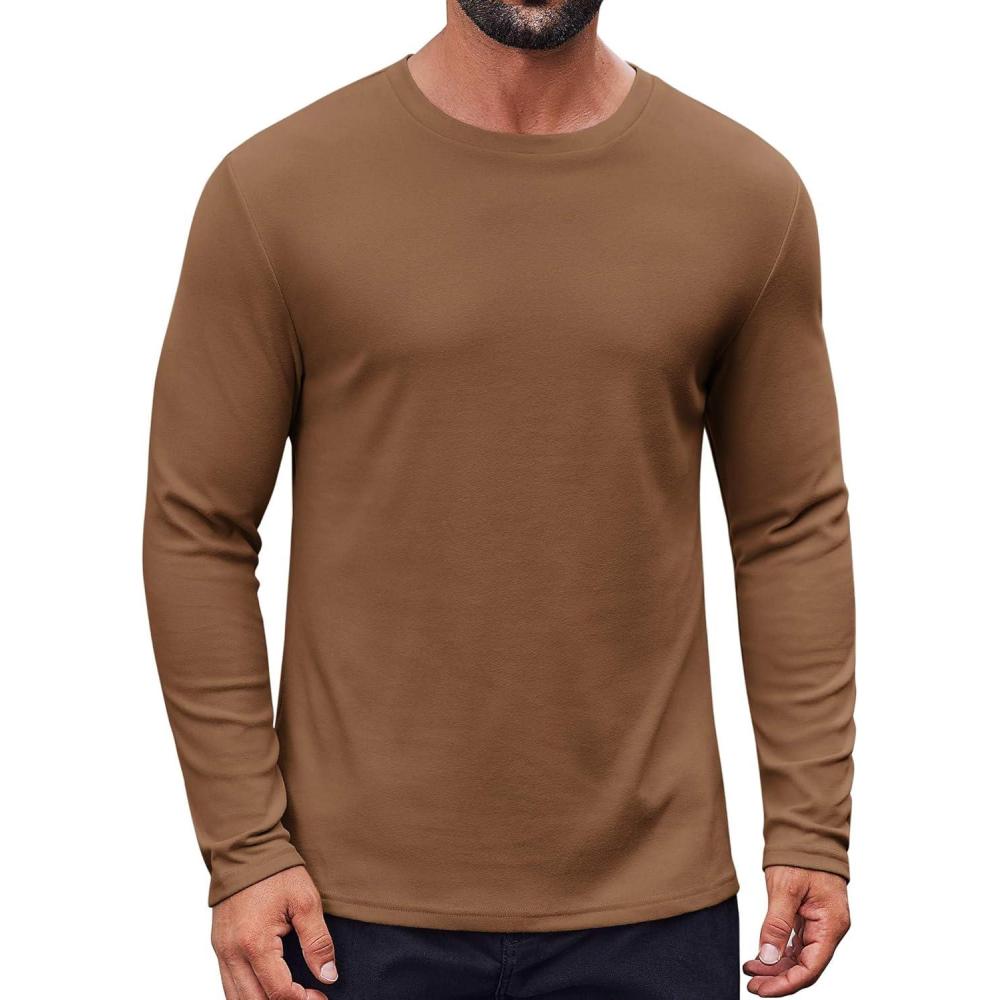 COOFANDY Thermal Shirts for Men Heavyweight Long Sleeve T Shirt Casual Basic Shirts Stretch Crew Neck Undershirts(Brown)