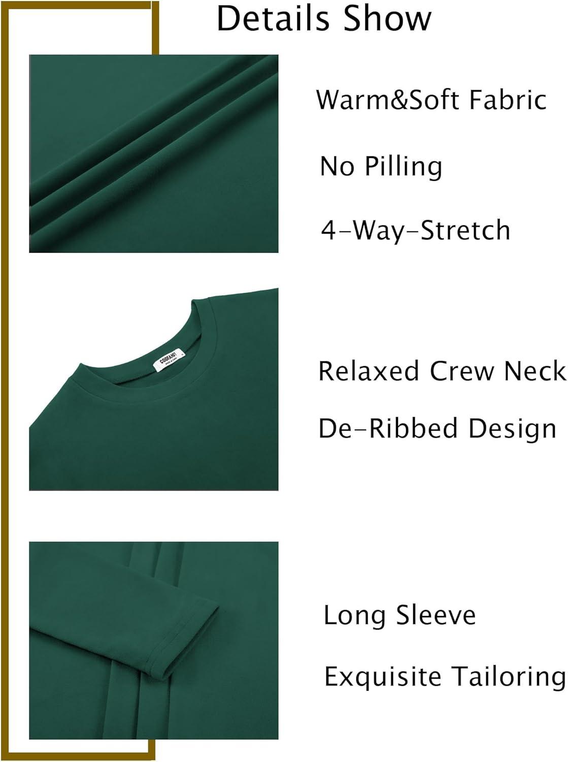 COOFANDY Thermal Shirts for Men Heavyweight Long Sleeve T Shirt Casual Basic Shirts Stretch Crew Neck Undershirts(Green)