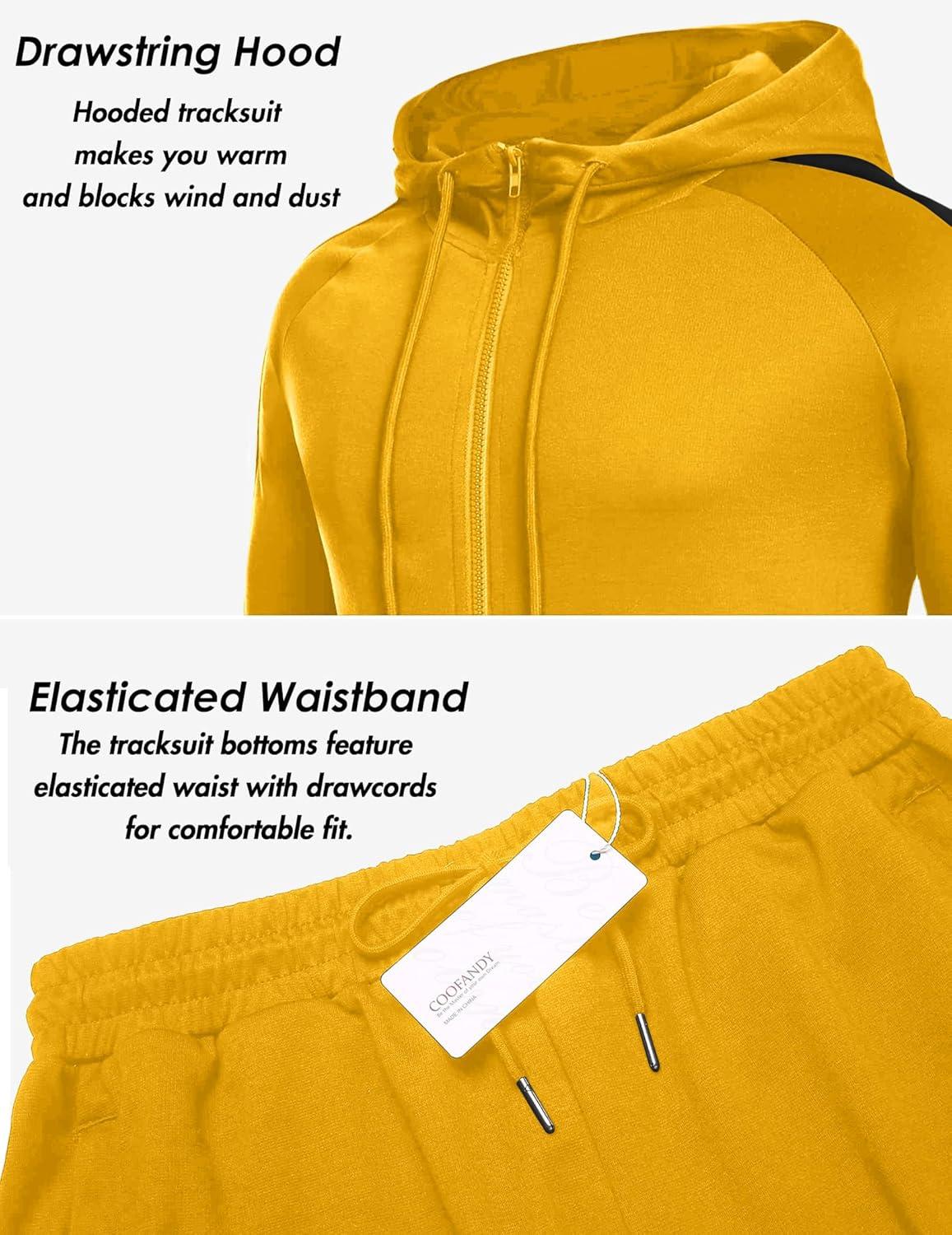 COOFANDY Tracksuit Mens with Zipper Pockets Full Zip Hoodie Sweatsuit 2 Pieces Running Jogging Sports Casual Sweat Suits(Yellow)