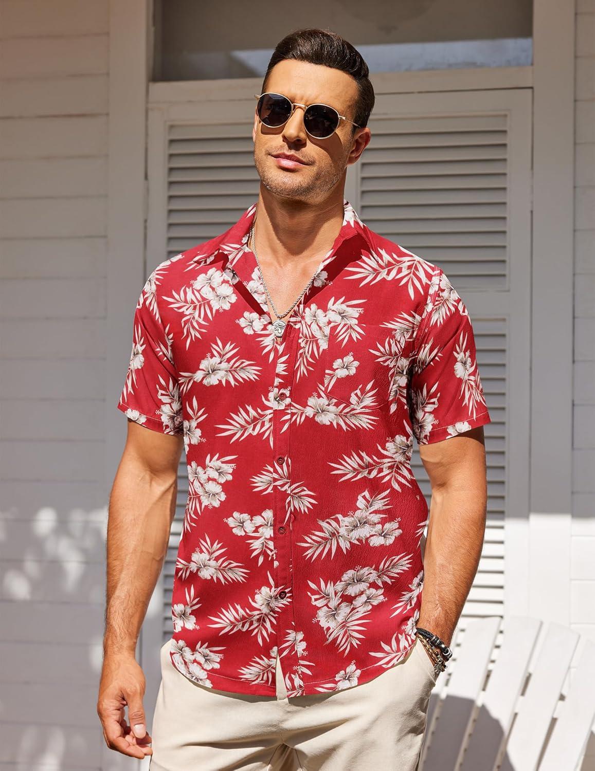 • COOFANDY Button Down Short Sleeve Summer Casual Beach Shirts Shirt(Dark Gray)