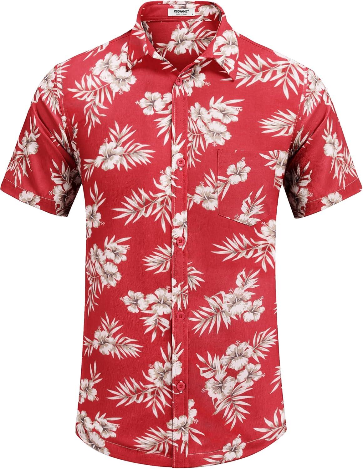 • COOFANDY Button Down Short Sleeve Summer Casual Beach Shirts Shirt(Dark Blue)