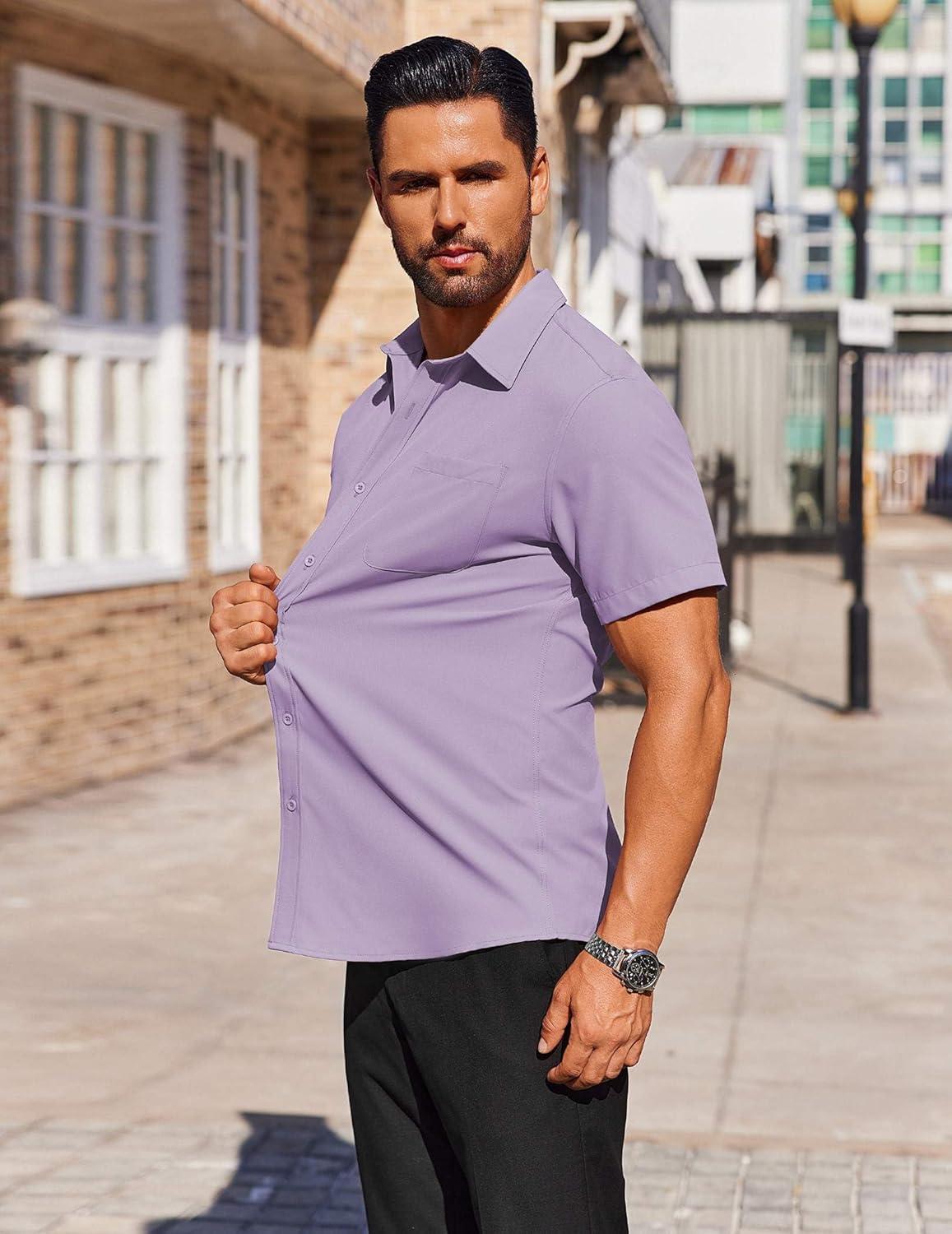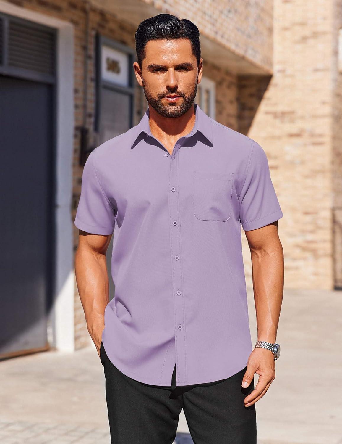• COOFANDY Button Down Short Sleeve Summer Casual Beach Shirts Shirt(Light Purple)