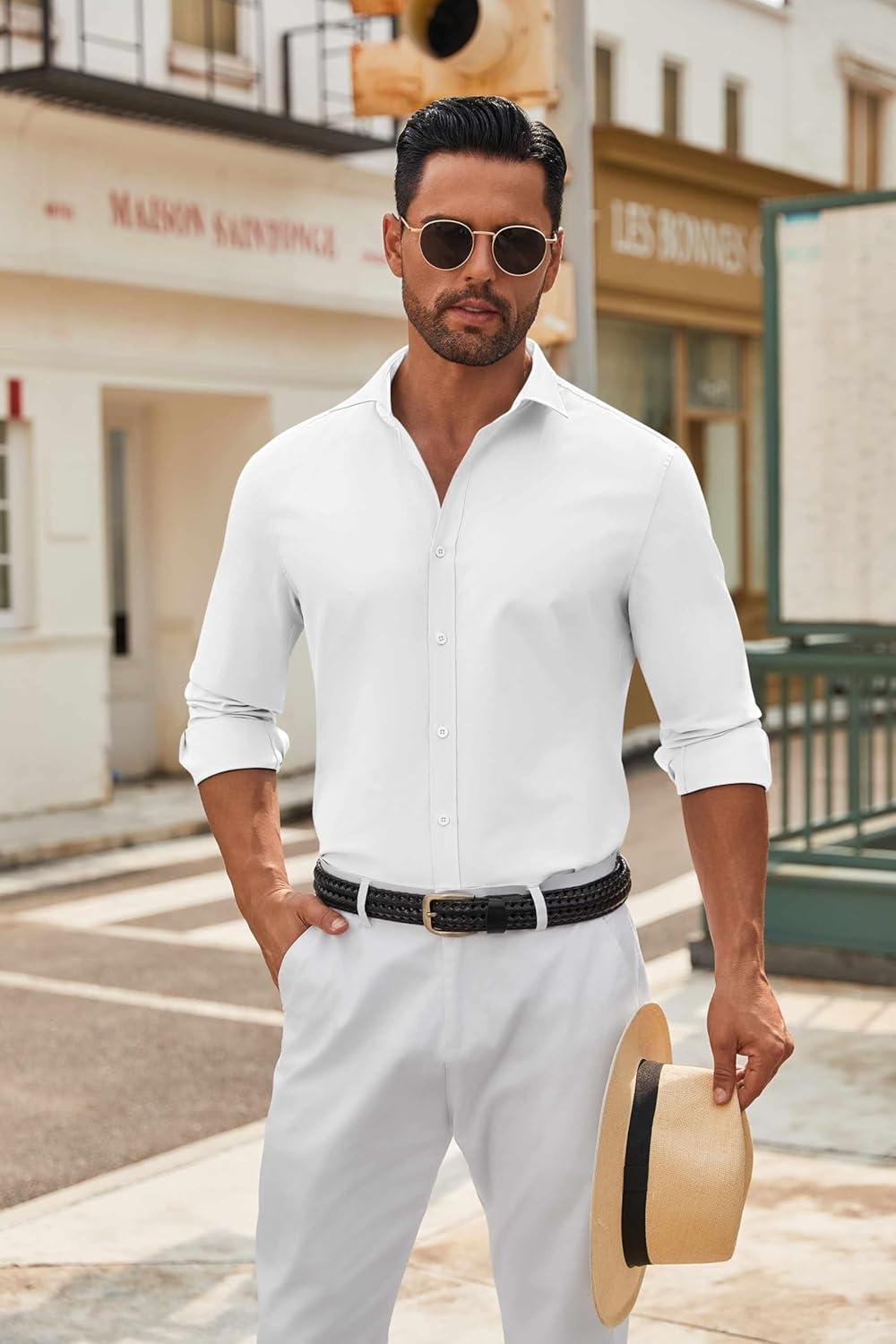• COOFANDY Button Down Short Sleeve Summer Casual Beach Shirts Shirt(Mint White Combo)
