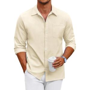 COOFANDY Men’s Oxford Shirt Long Sleeve Casual Button Down Shirts Regular Fit Dress Shirts(Beige)