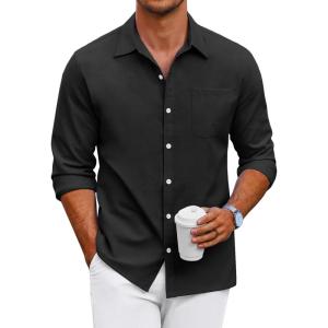 COOFANDY Men’s Oxford Shirt Long Sleeve Casual Button Down Shirts Regular Fit Dress Shirts(Black)