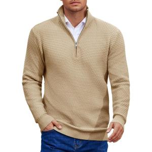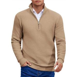 COOFANDY Mens Quarter Zip Pullover Slim Fit Lightweight Knit Pullover Sweaters Casual Polo Sweater(Khaki)