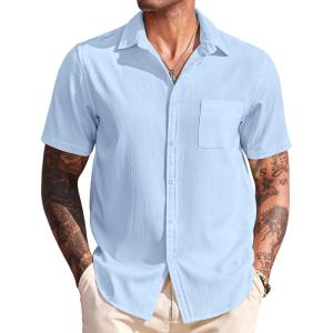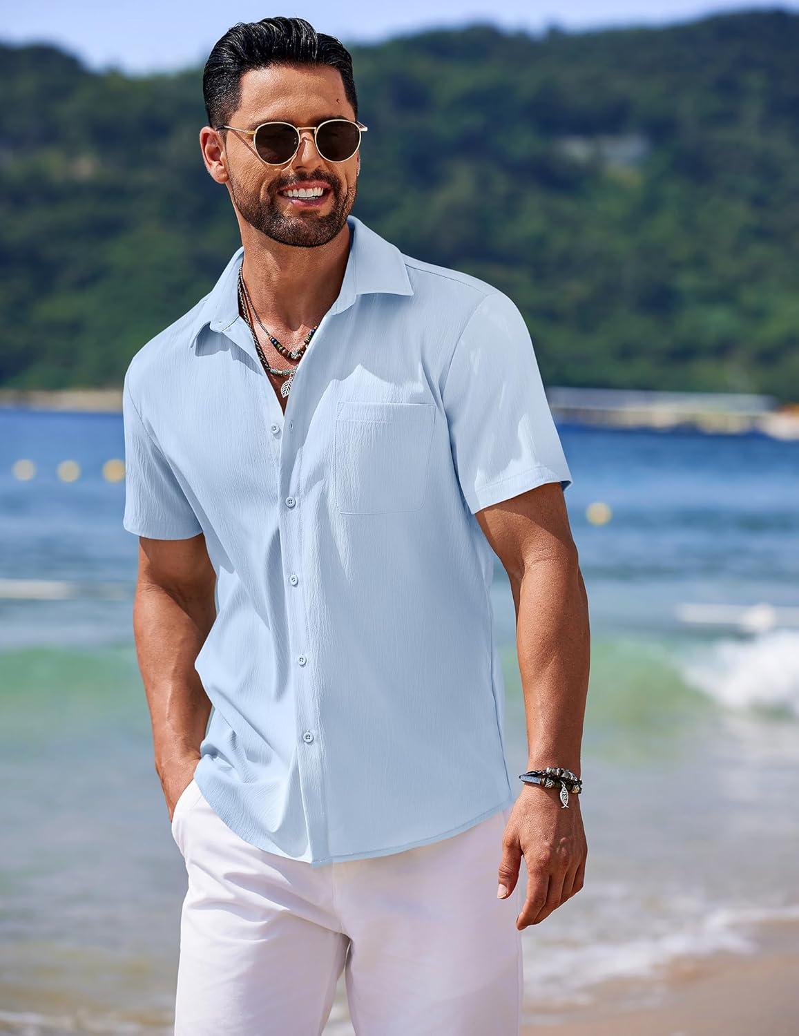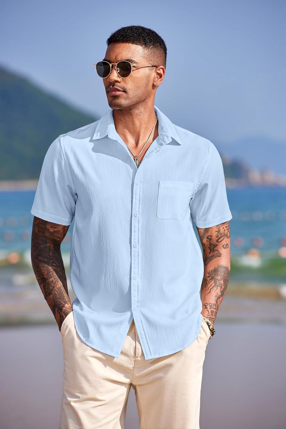COOFANDY Shirts for Men Short Sleeve Button Down Shirt Casual Summer Beach Shirts(Clean Blue)