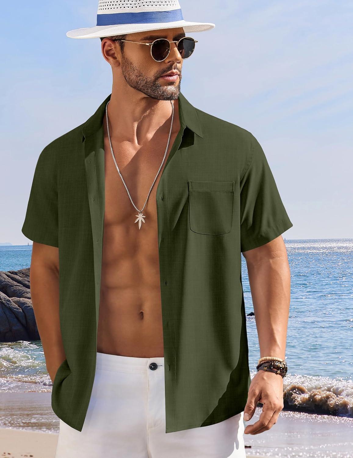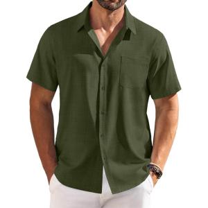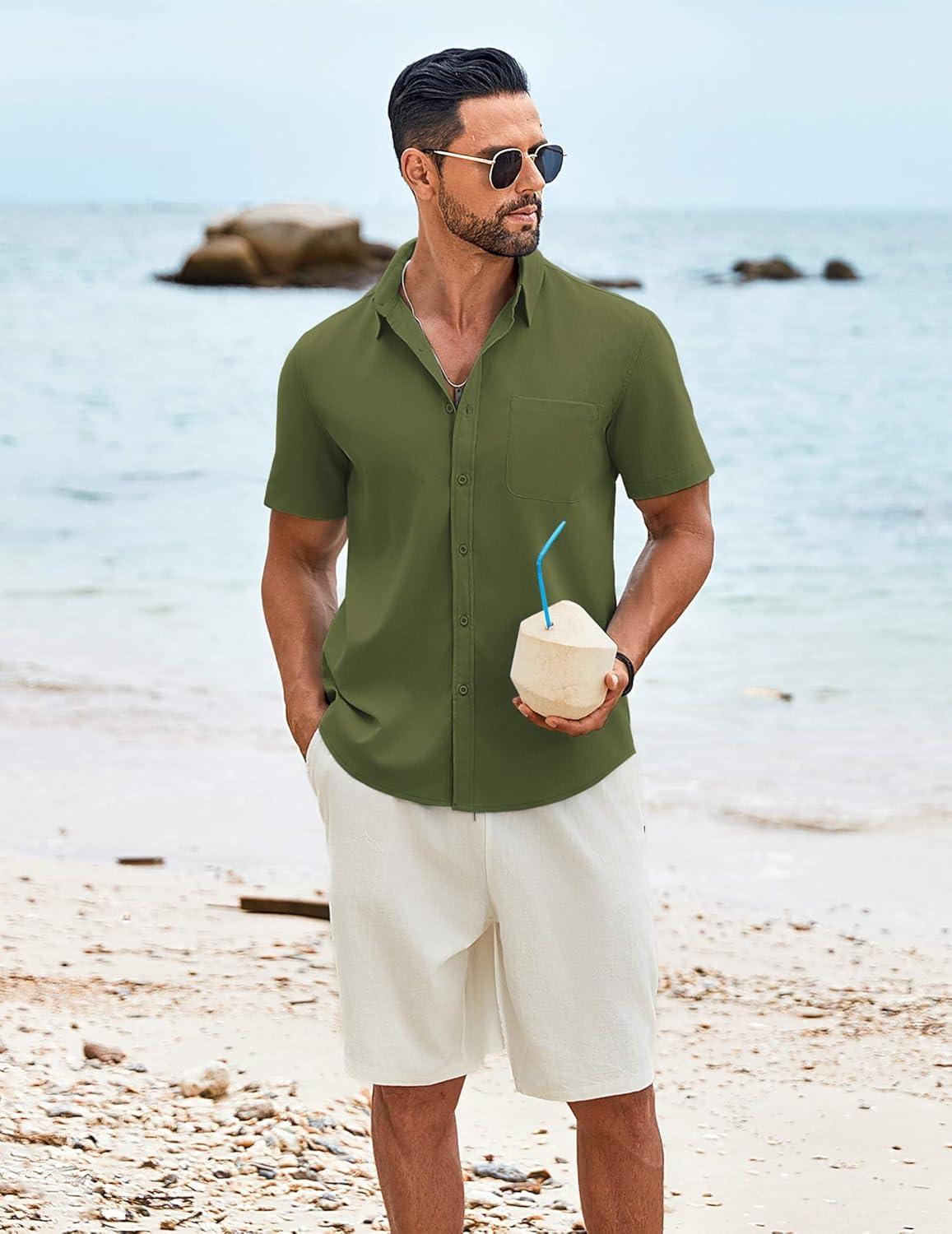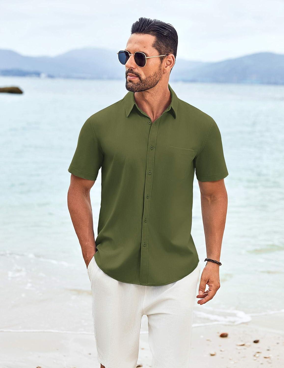 COOFANDY Shirts for Men Short Sleeve Button Down Shirt Casual Summer Beach Shirts(Army Green)
