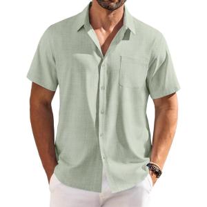 COOFANDY Shirts for Men Short Sleeve Button Down Shirt Casual Summer Beach Shirts(A-sage Green)