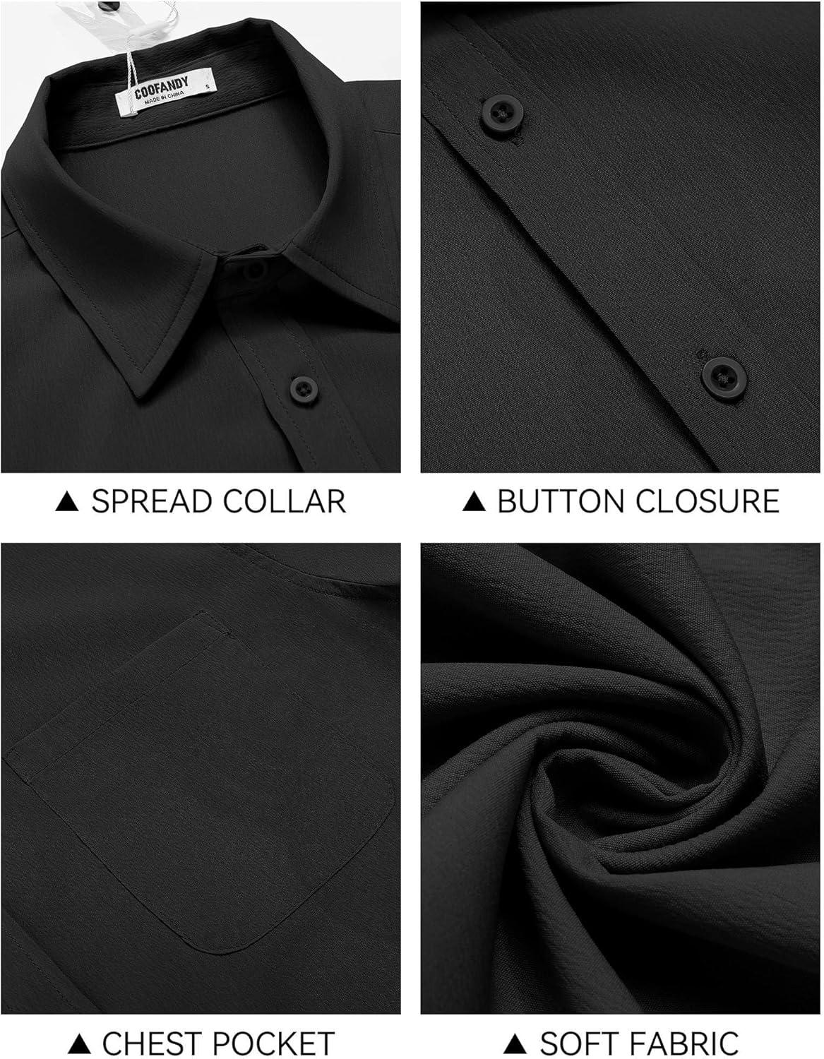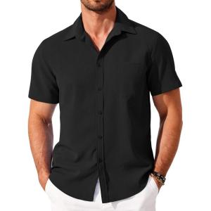 COOFANDY Shirts for Men Short Sleeve Button Down Shirt Casual Summer Beach Shirts(Black)