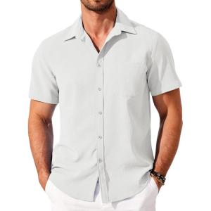 COOFANDY Shirts for Men Short Sleeve Button Down Shirt Casual Summer Beach Shirts(Cream)