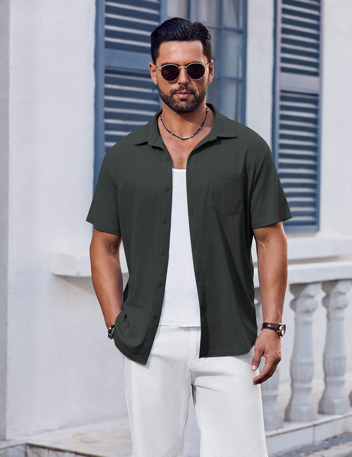 COOFANDY Men’s Short Sleeve Button Down Shirt Casual Summer Beach Shirts Vacation Wedding Shirt with Pocket(Ashen Gray)