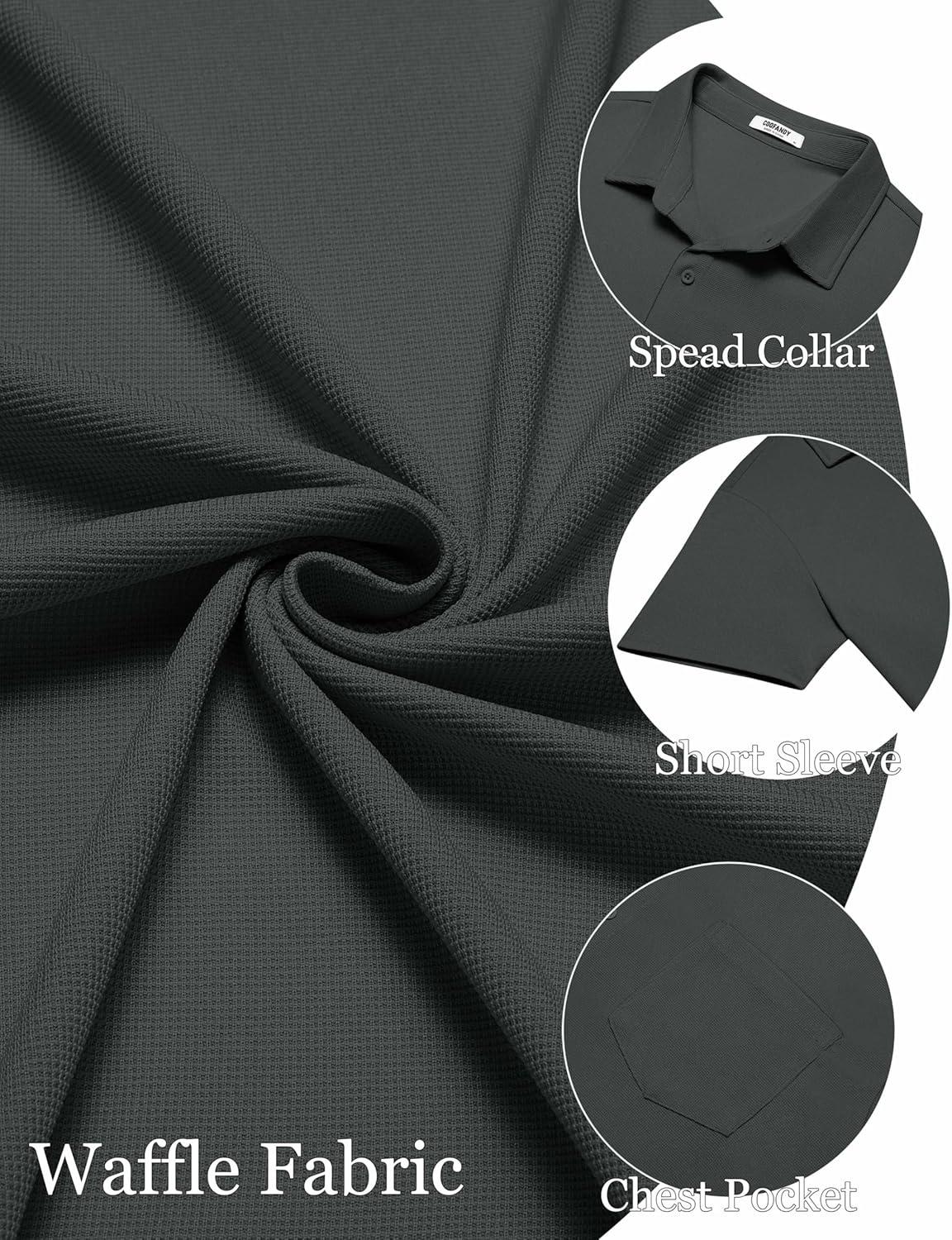 COOFANDY Men’s Short Sleeve Button Down Shirt Casual Summer Beach Shirt Waffle Knit Shirts Wrinkle Free Untucked Shirt(Dark Grey)