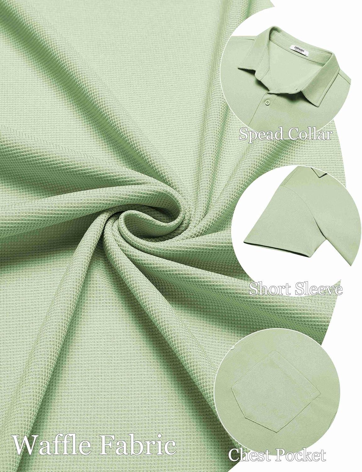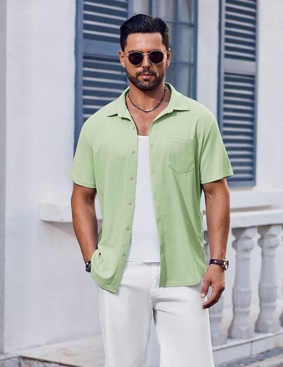 COOFANDY Men’s Short Sleeve Button Down Shirt Casual Summer Beach Shirt Waffle Knit Shirts Wrinkle Free Untucked Shirt(Light Green)