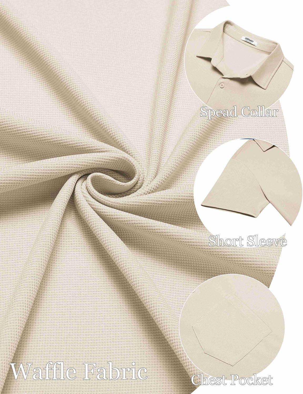 COOFANDY Men’s Short Sleeve Button Down Shirt Casual Summer Beach Shirt Waffle Knit Shirts Wrinkle Free Untucked Shirt(Light Khaki)