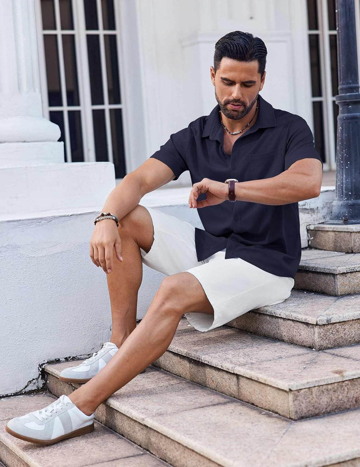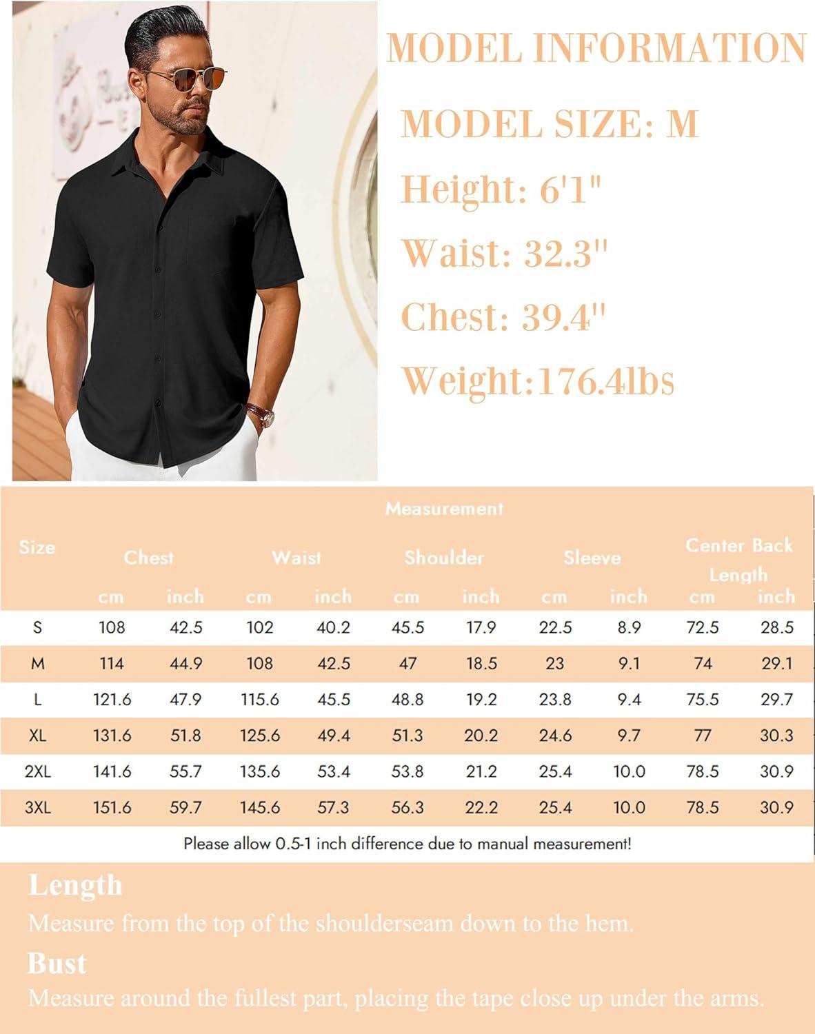 COOFANDY Men’s Short Sleeve Button Down Shirt Casual Summer Beach Shirts Vacation Wedding Shirt with Pocket(Black)